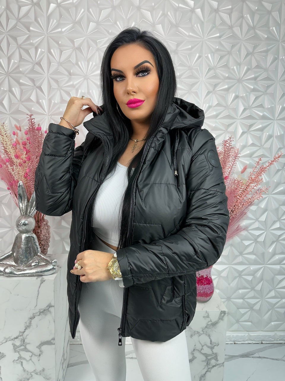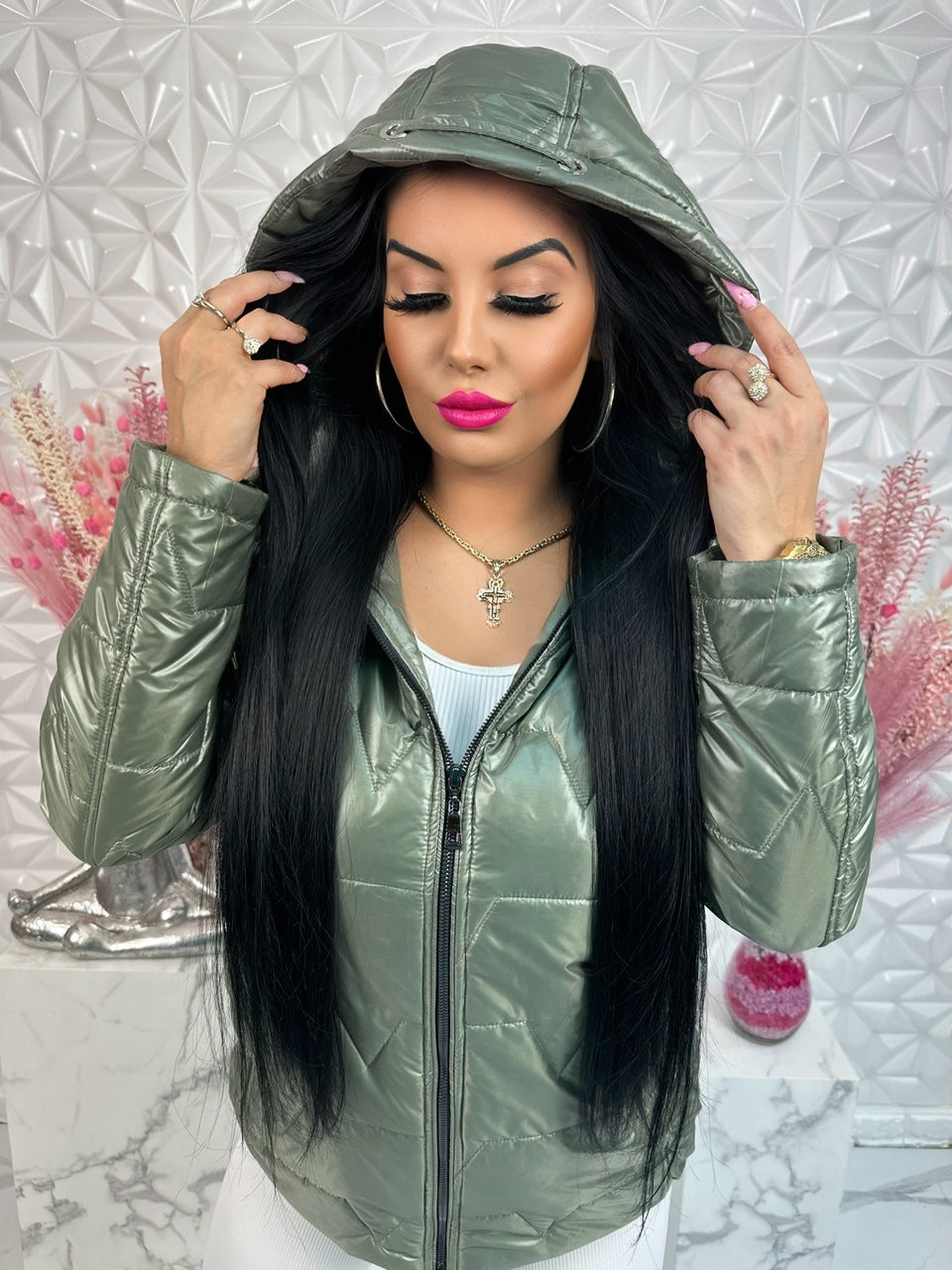 Podkreśl swoją sylwetkę i ciesz się komfortem w chłodniejsze dni. Kurtka INGA to przejściowy model od polskiej marki Clyde, który łączy funkcjonalność i kobiecy krój. Lekki pikowany materiał nie obciąża, a taliowanie pięknie modeluje figurę. Duży odpinany kaptur sprawia, że to praktyczna i stylowa propozycja na jesień.