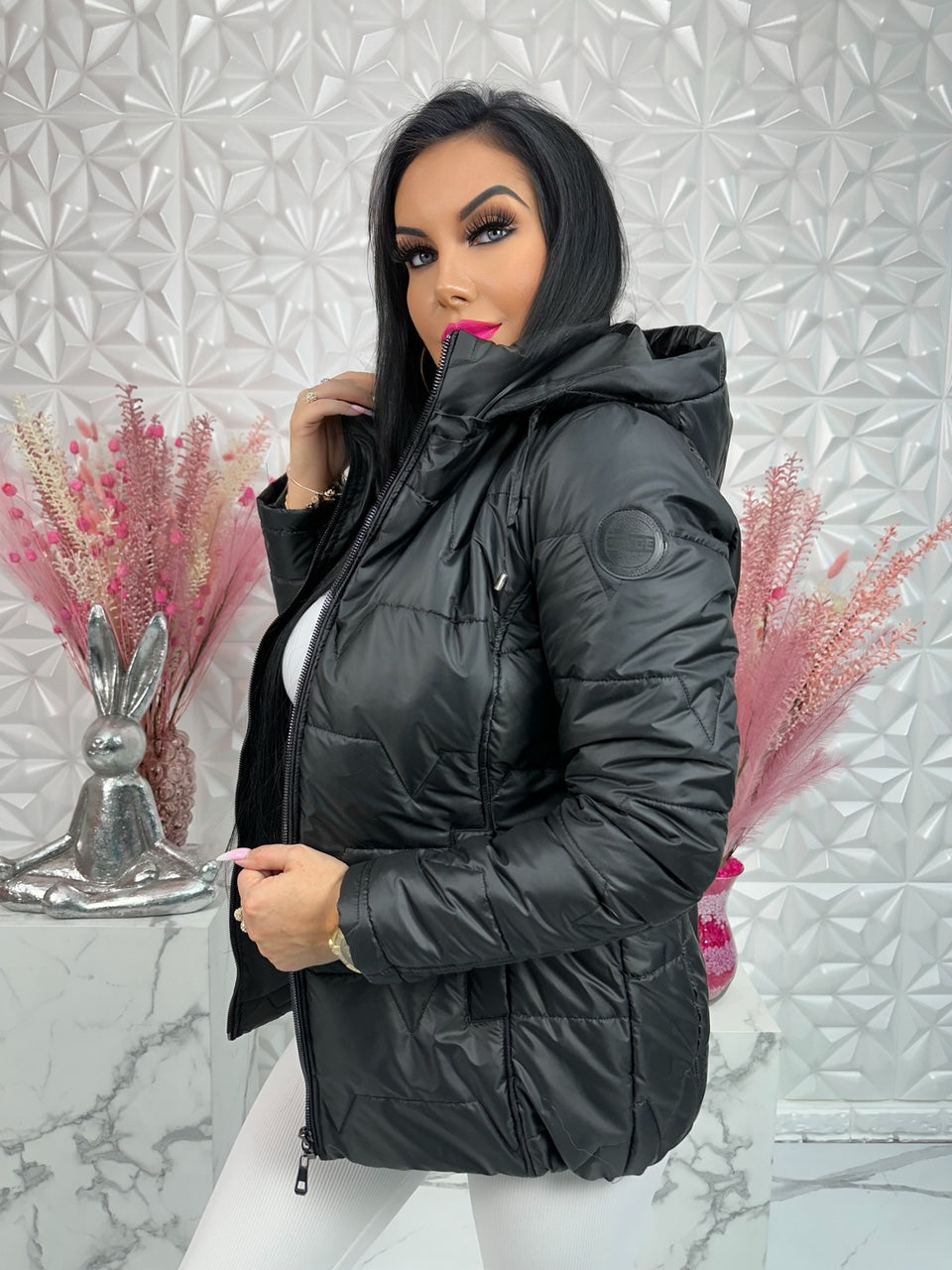 Kurtka INGA pikowana taliowana z kapturem – polska jesienna, CLYDE czarna