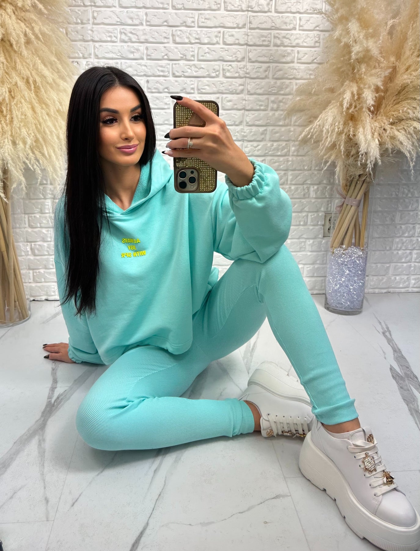 Komplet dresowy ALWAYS to połączenie wygody, nowoczesnego designu i kobiecego kroju, który pięknie podkreśla figurę. Idealny zarówno na co dzień, jak i na wyjazdy, spacery czy stylizacje athleisure.
