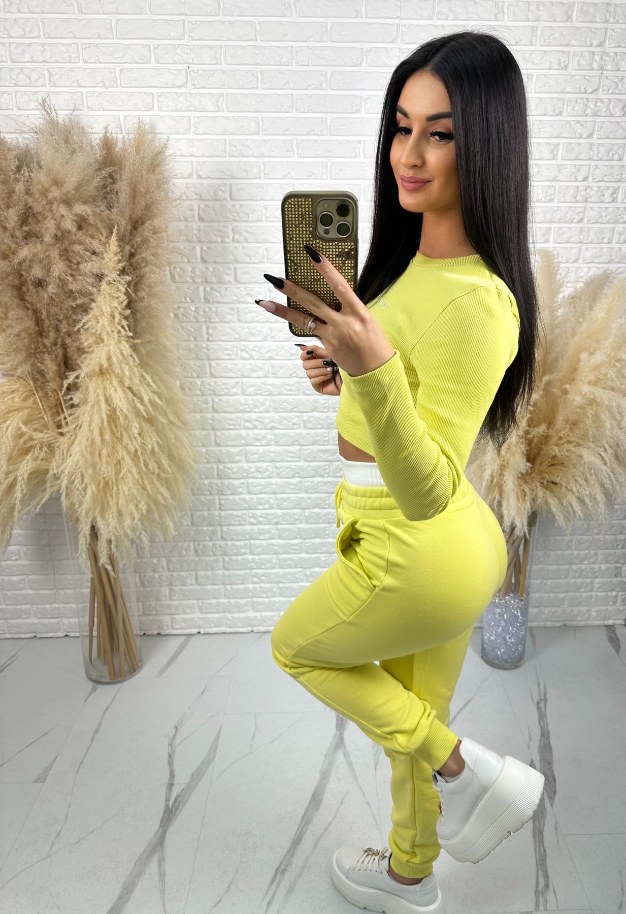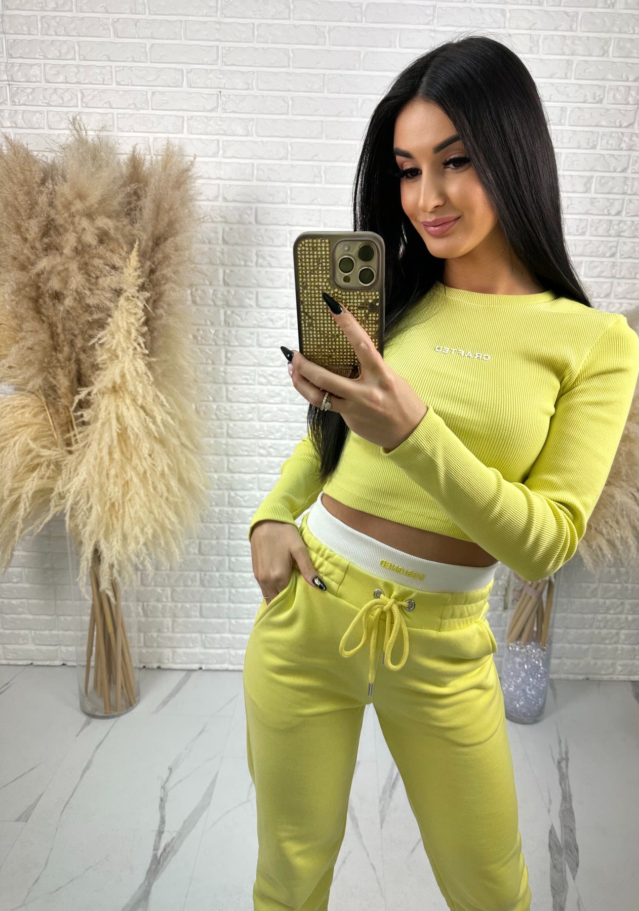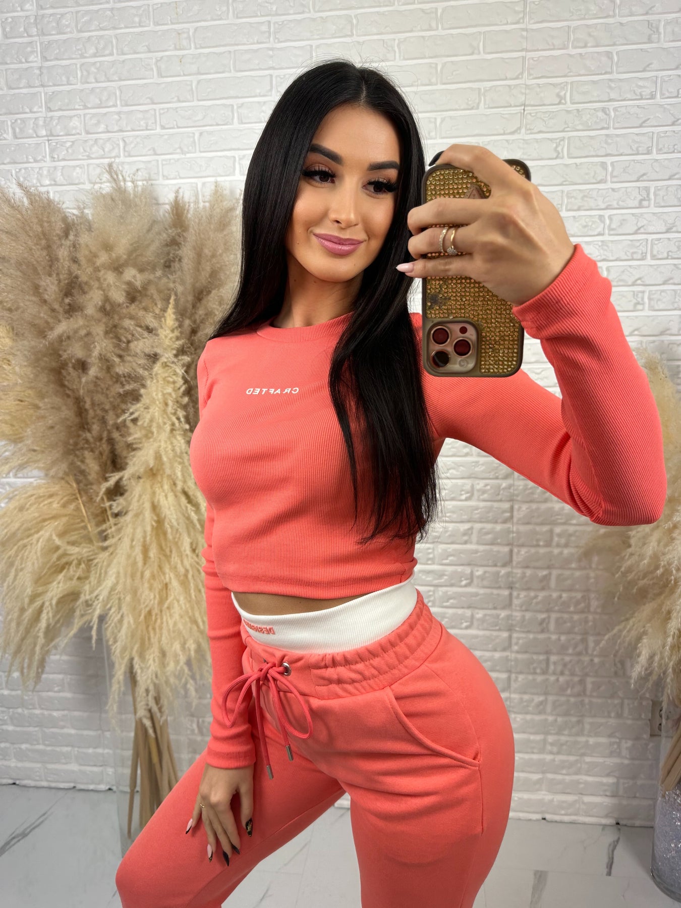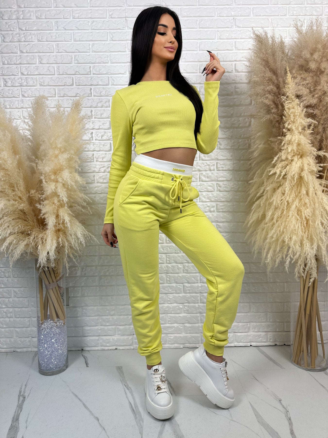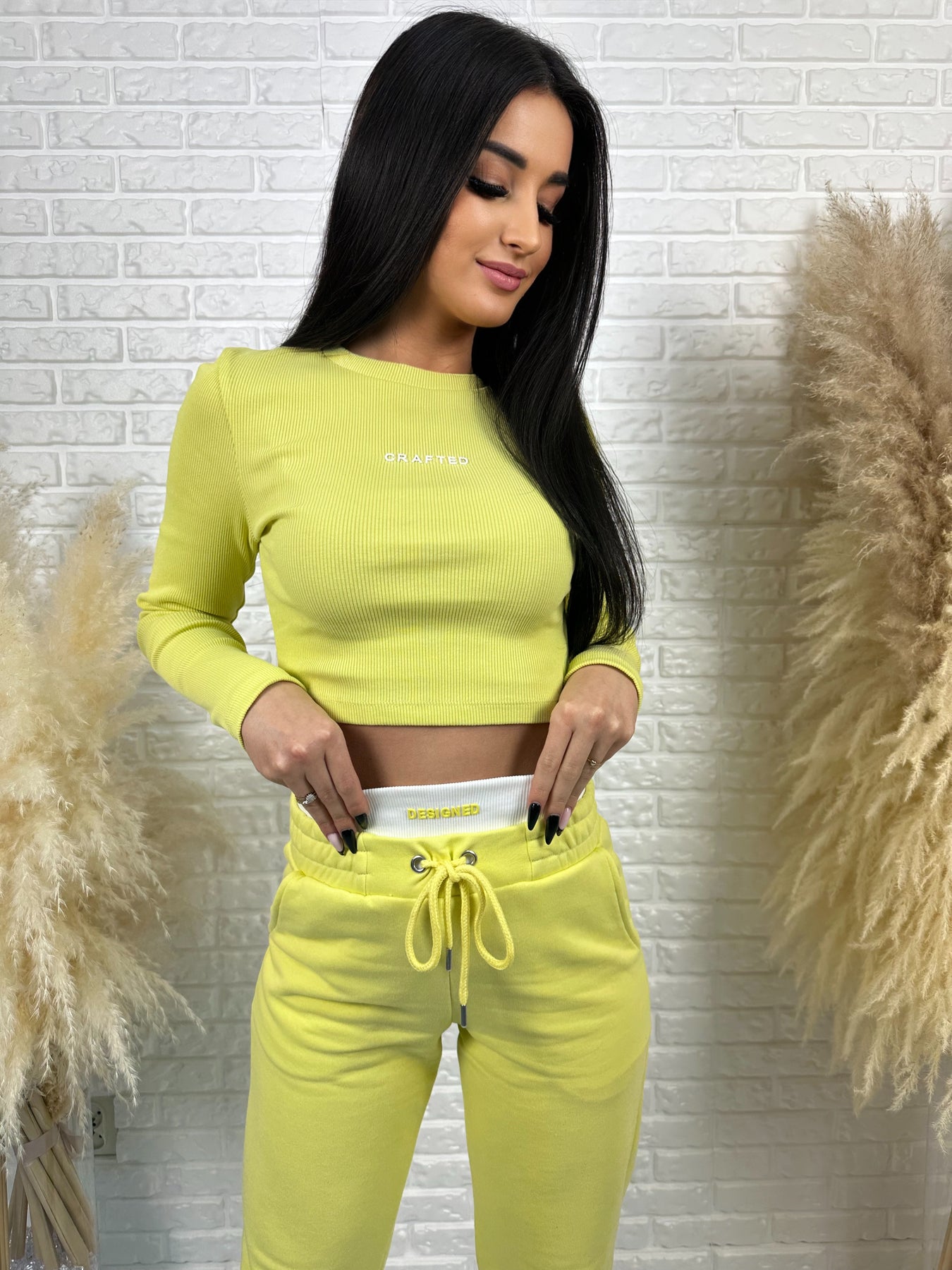 Komplet CRAFTED to idealne połączenie wygody, nowoczesnego designu i kobiecego podkreślenia sylwetki. Krótka, prążkowana bluzka pięknie akcentuje talię, a spodnie z wysokim stanem modelują figurę i dają efekt WOW – szczególnie z tyłu 😍
