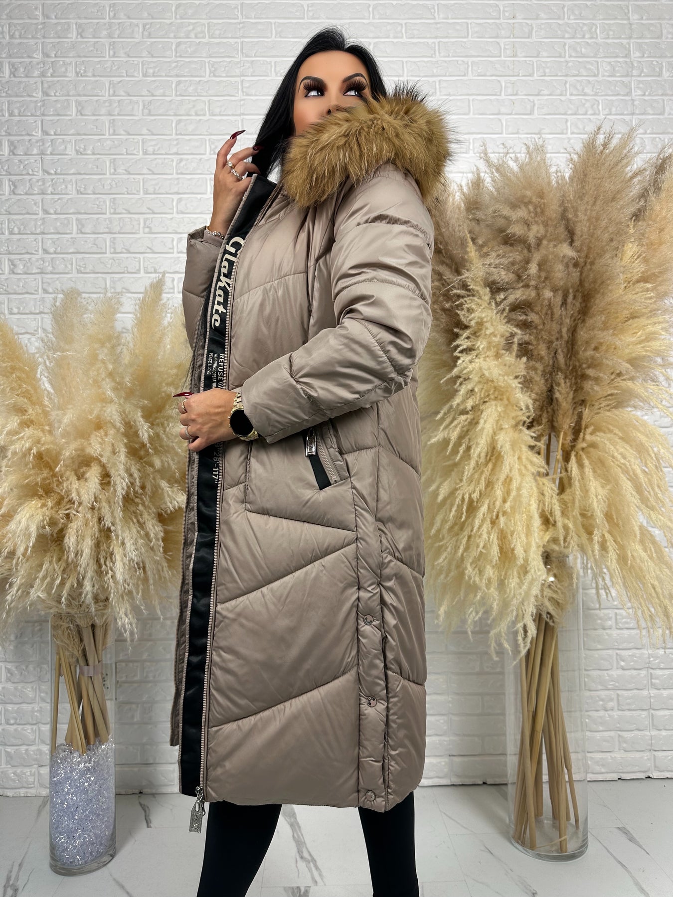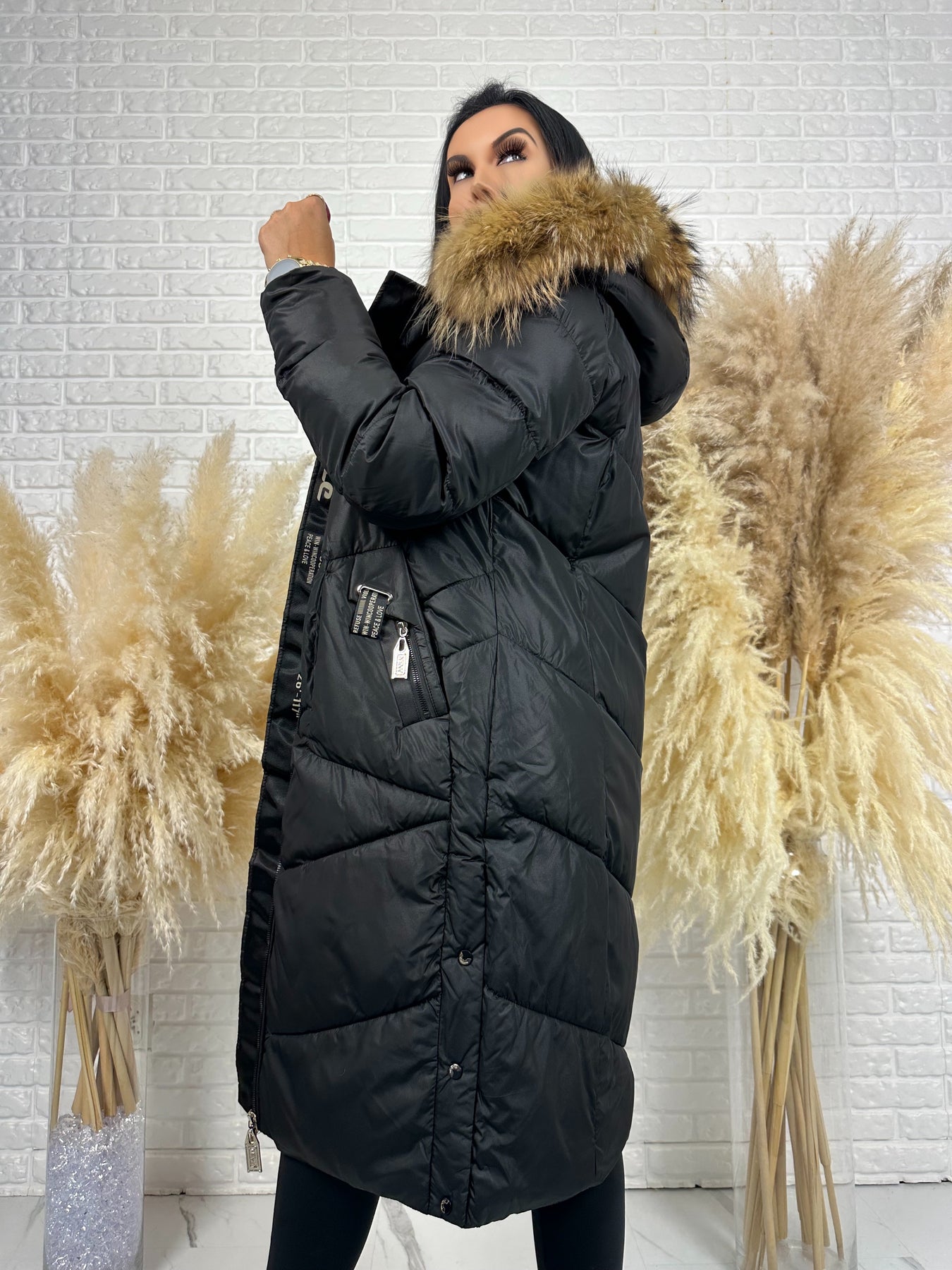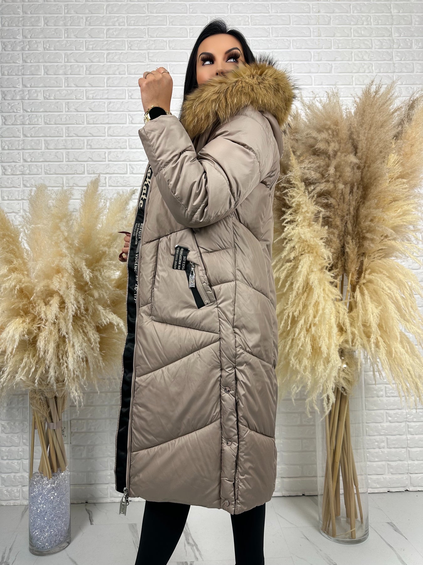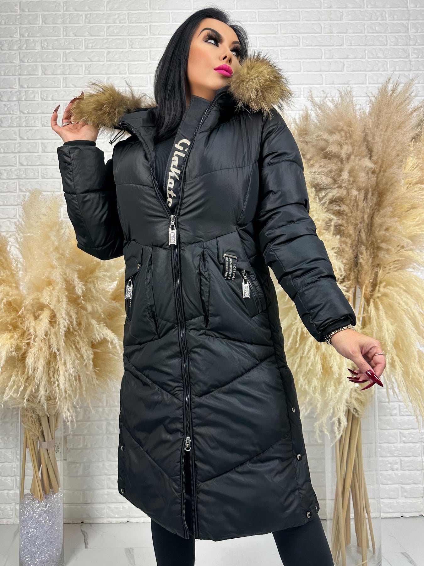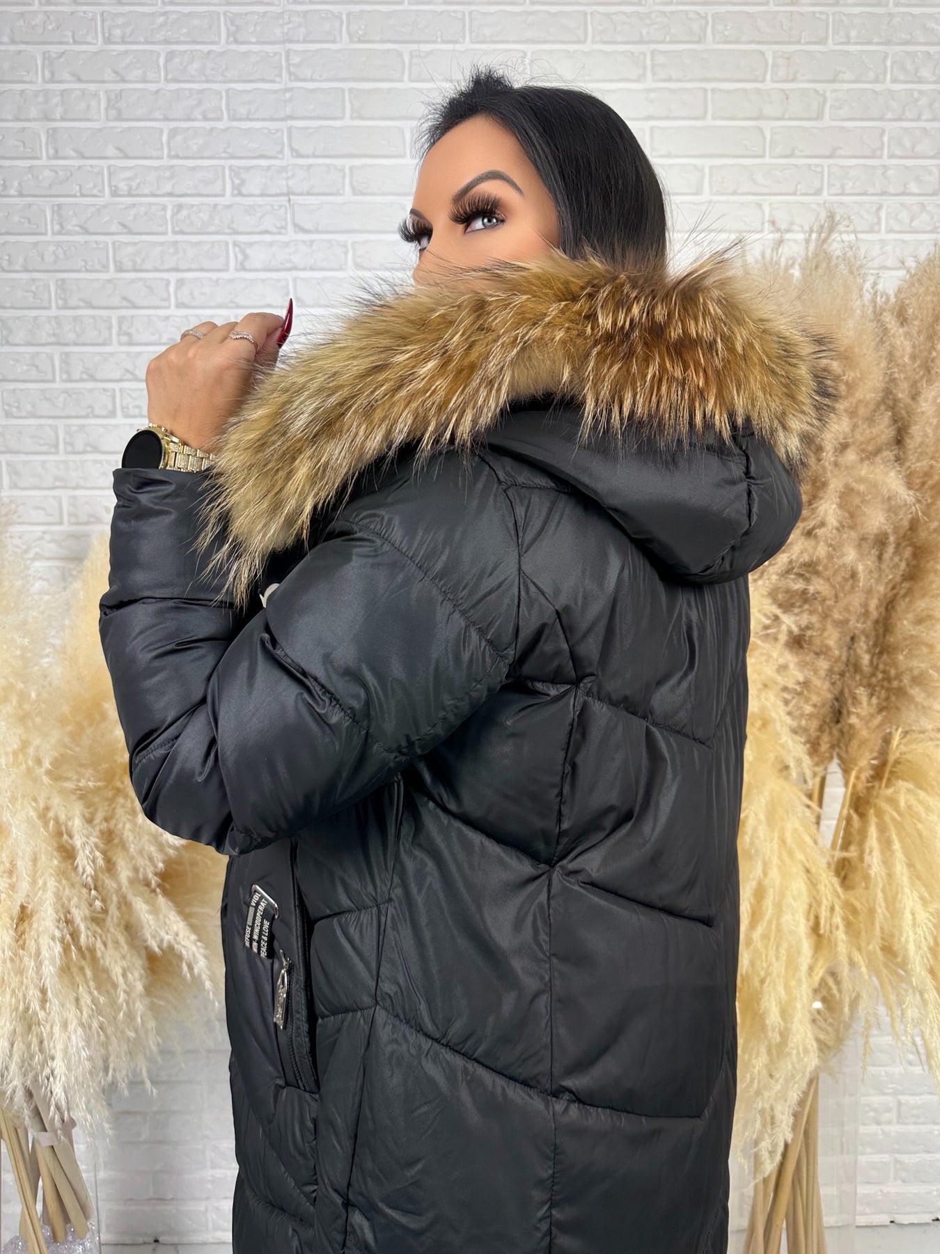 Kurtka MESA - długa zimowa kurtka, kaptur z futerkiem