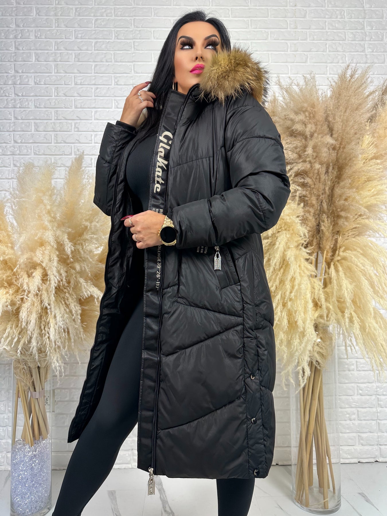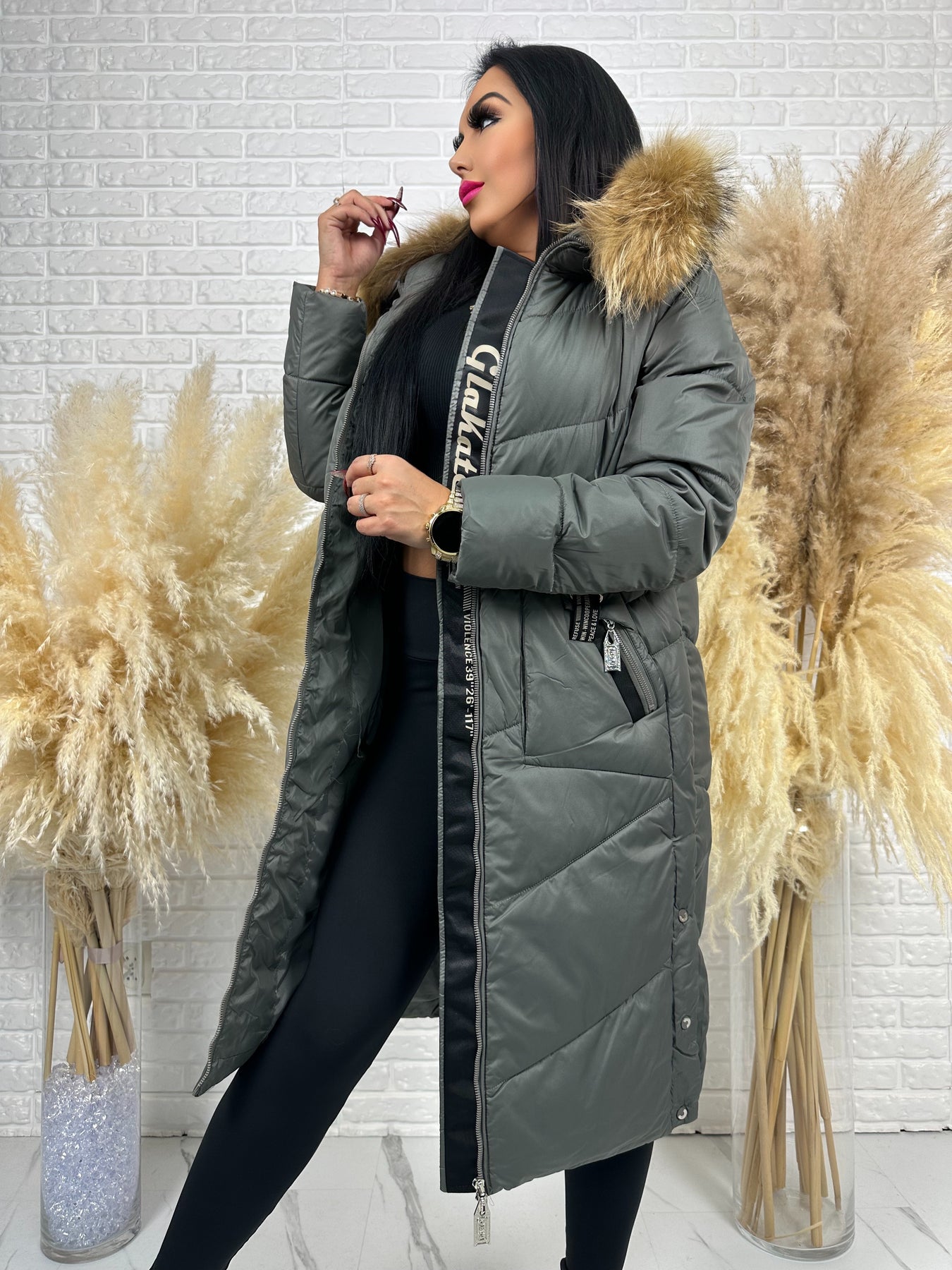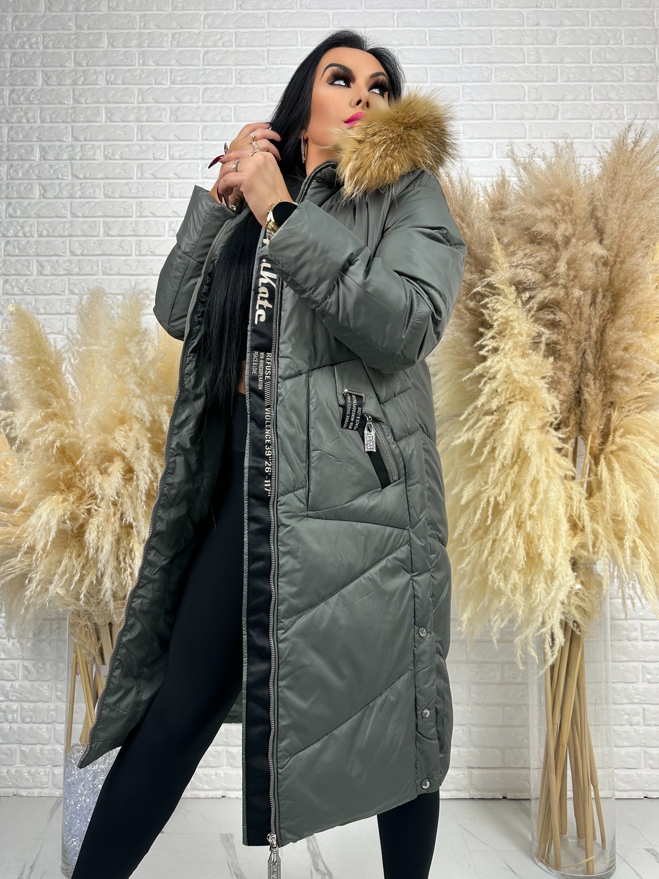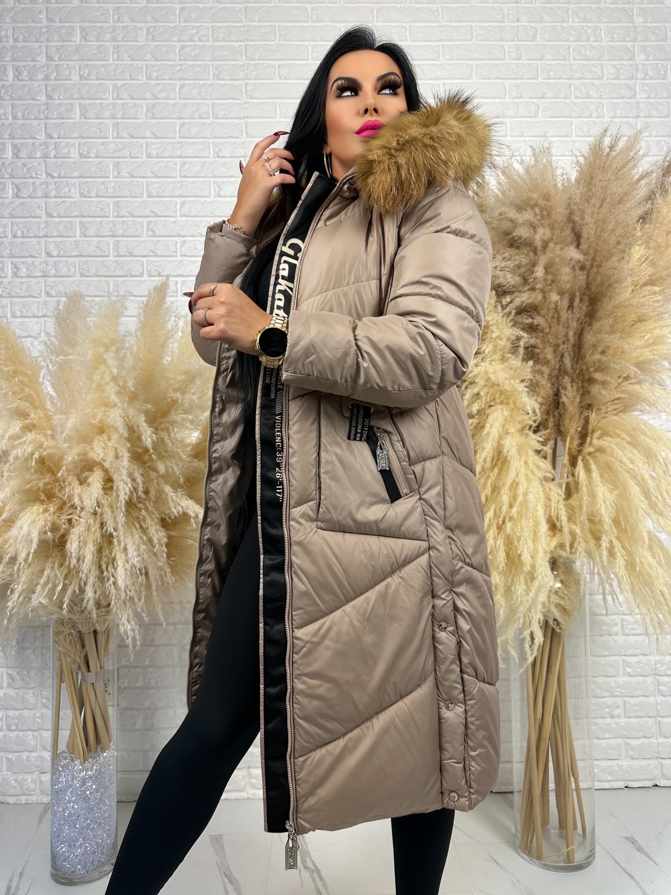 Kurtka MESA - długa zimowa kurtka, kaptur z futerkiem