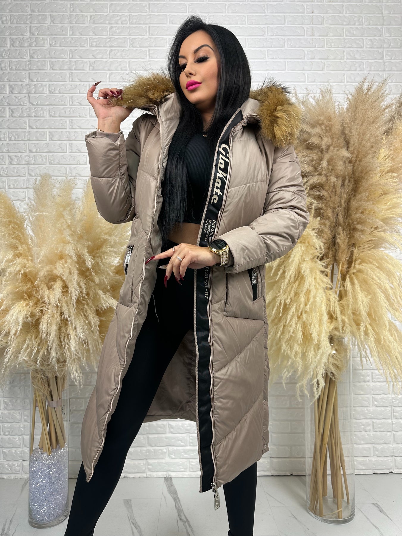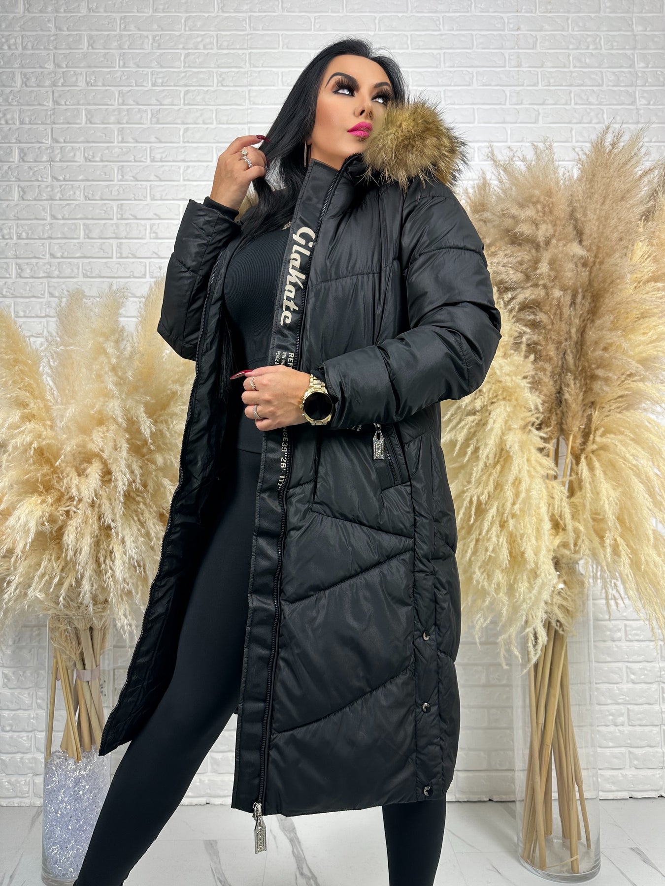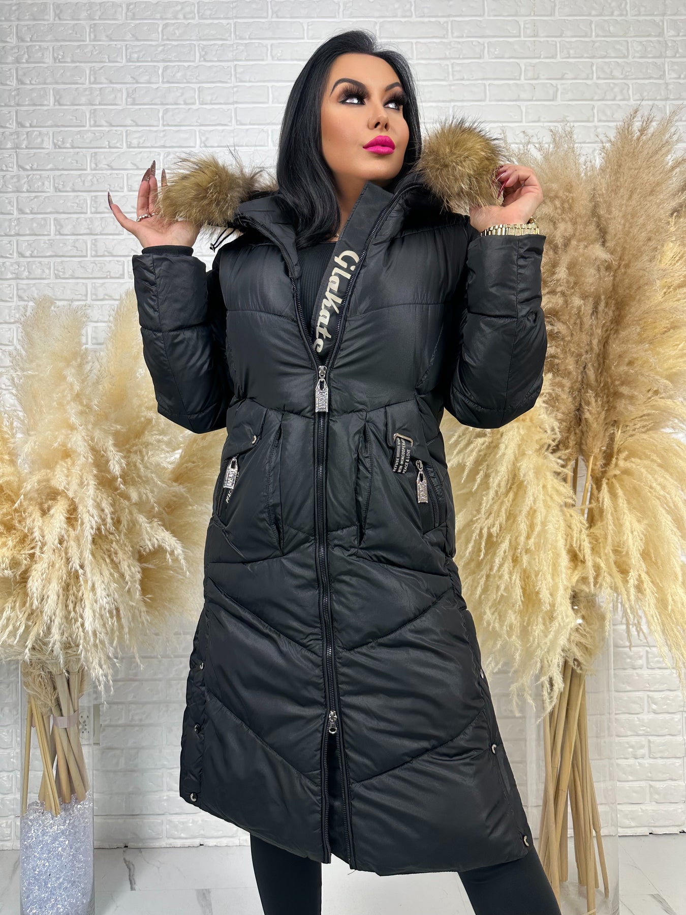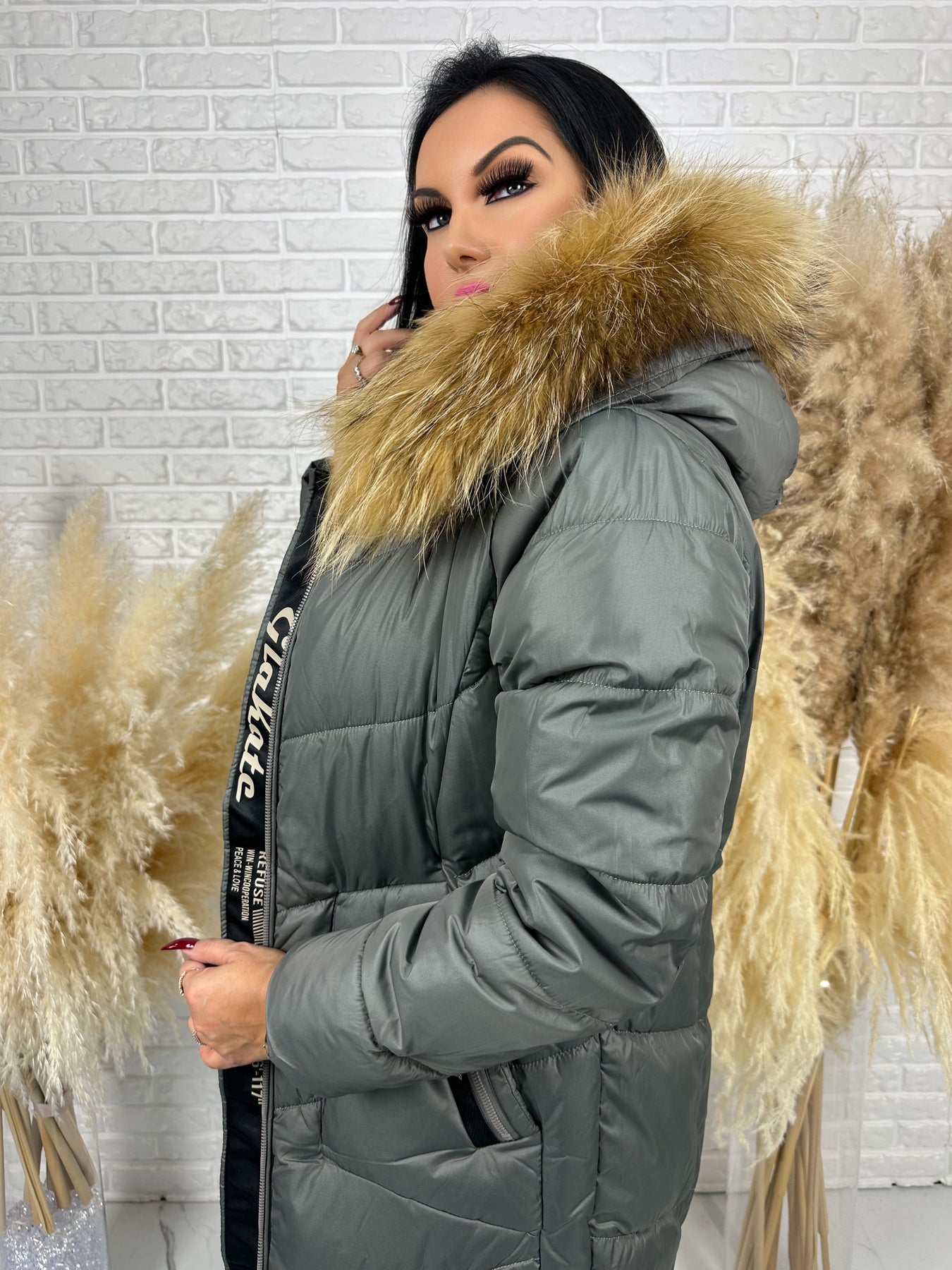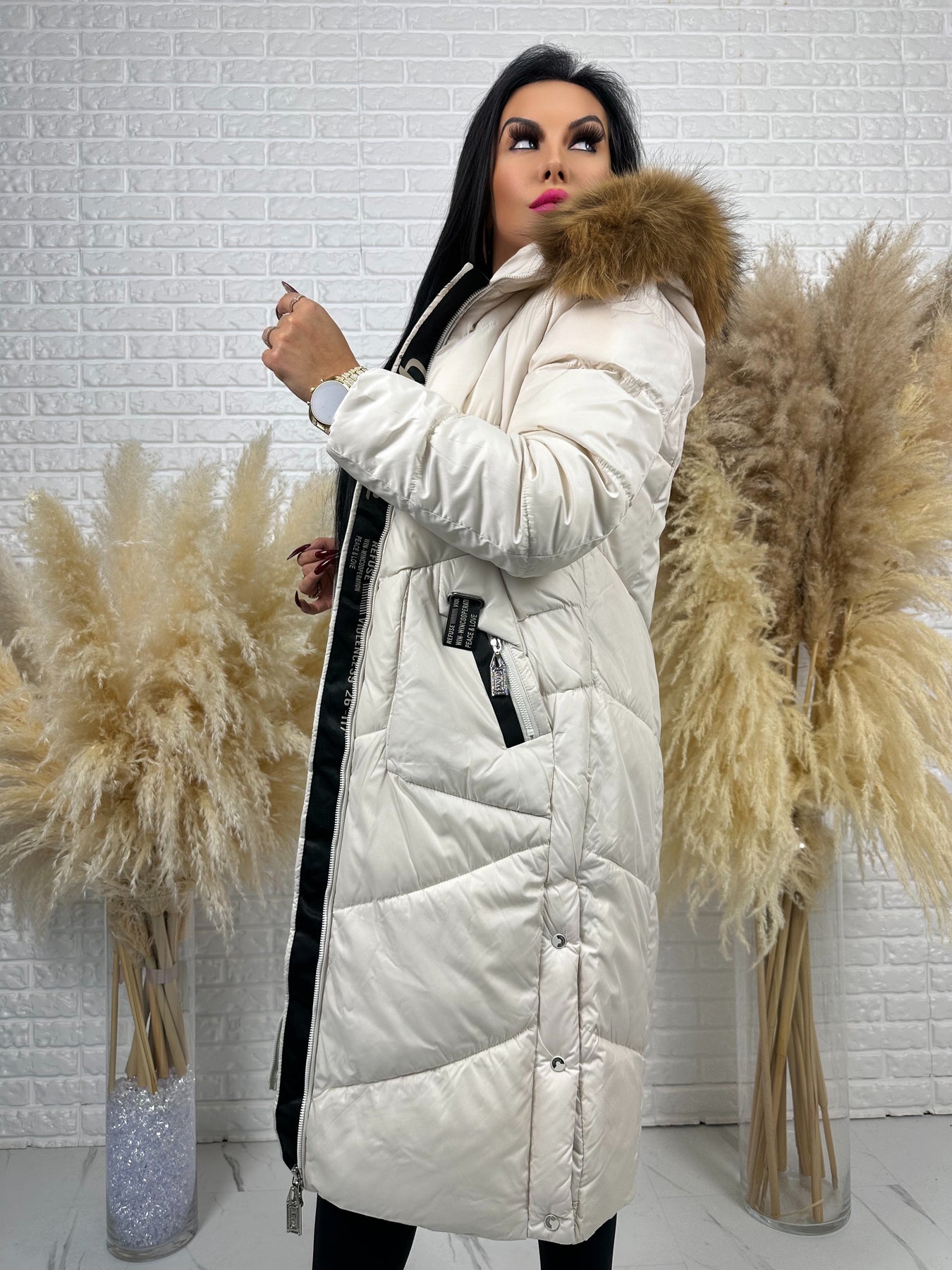 Kurtka MESA - długa zimowa kurtka, kaptur z futerkiem