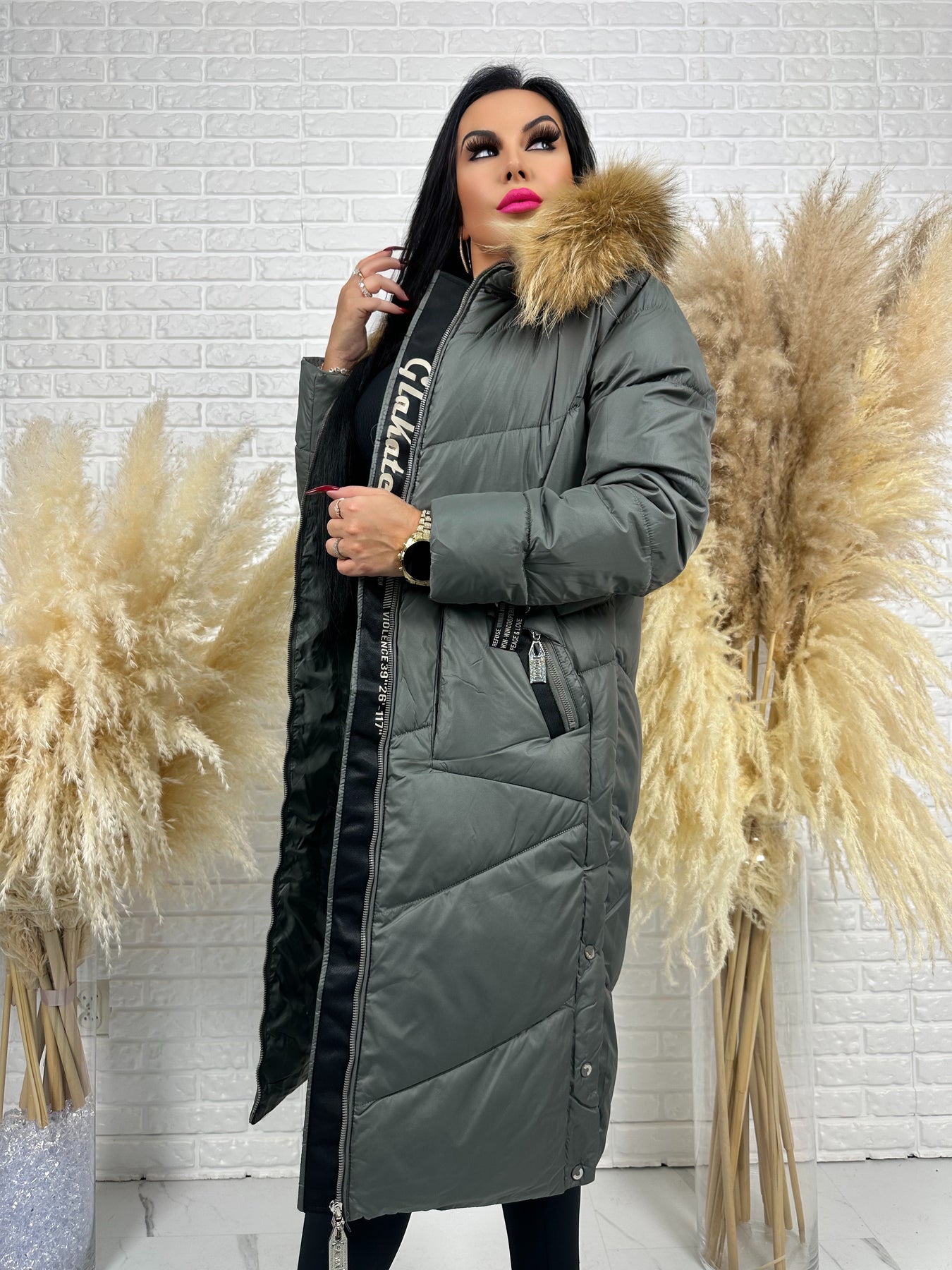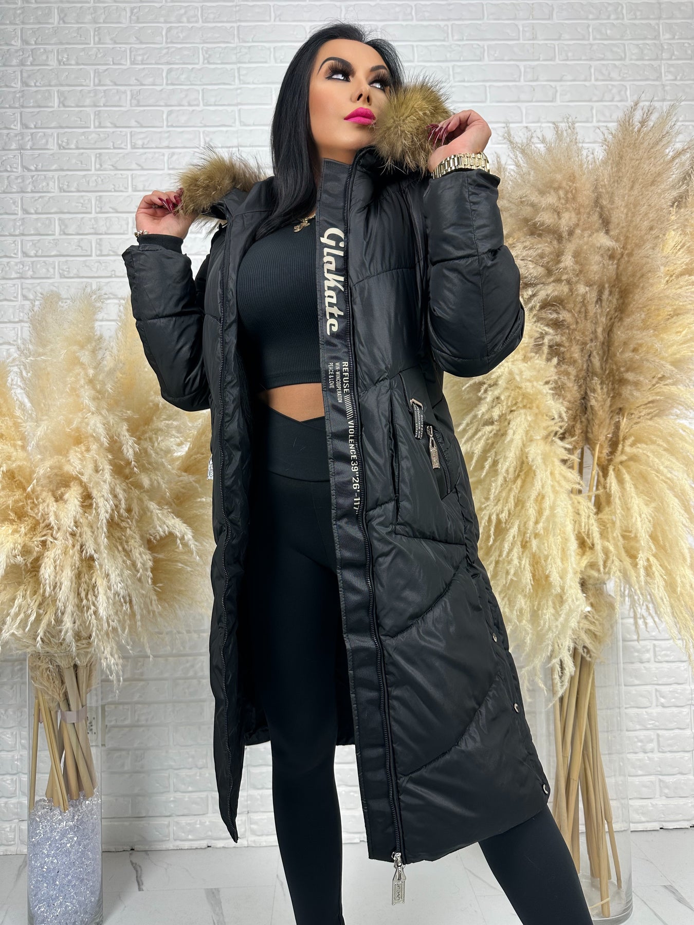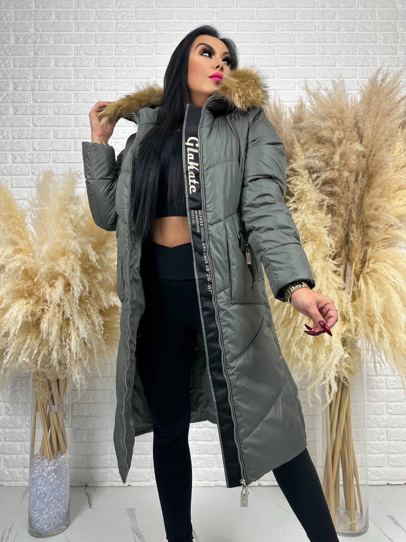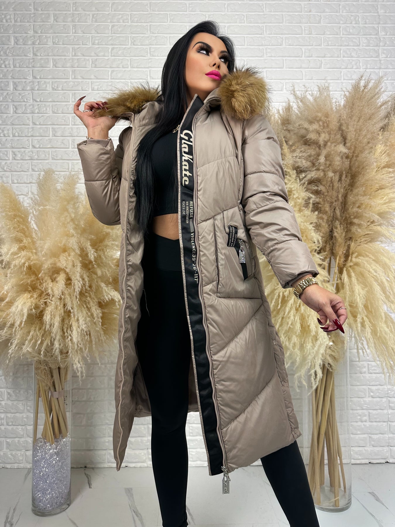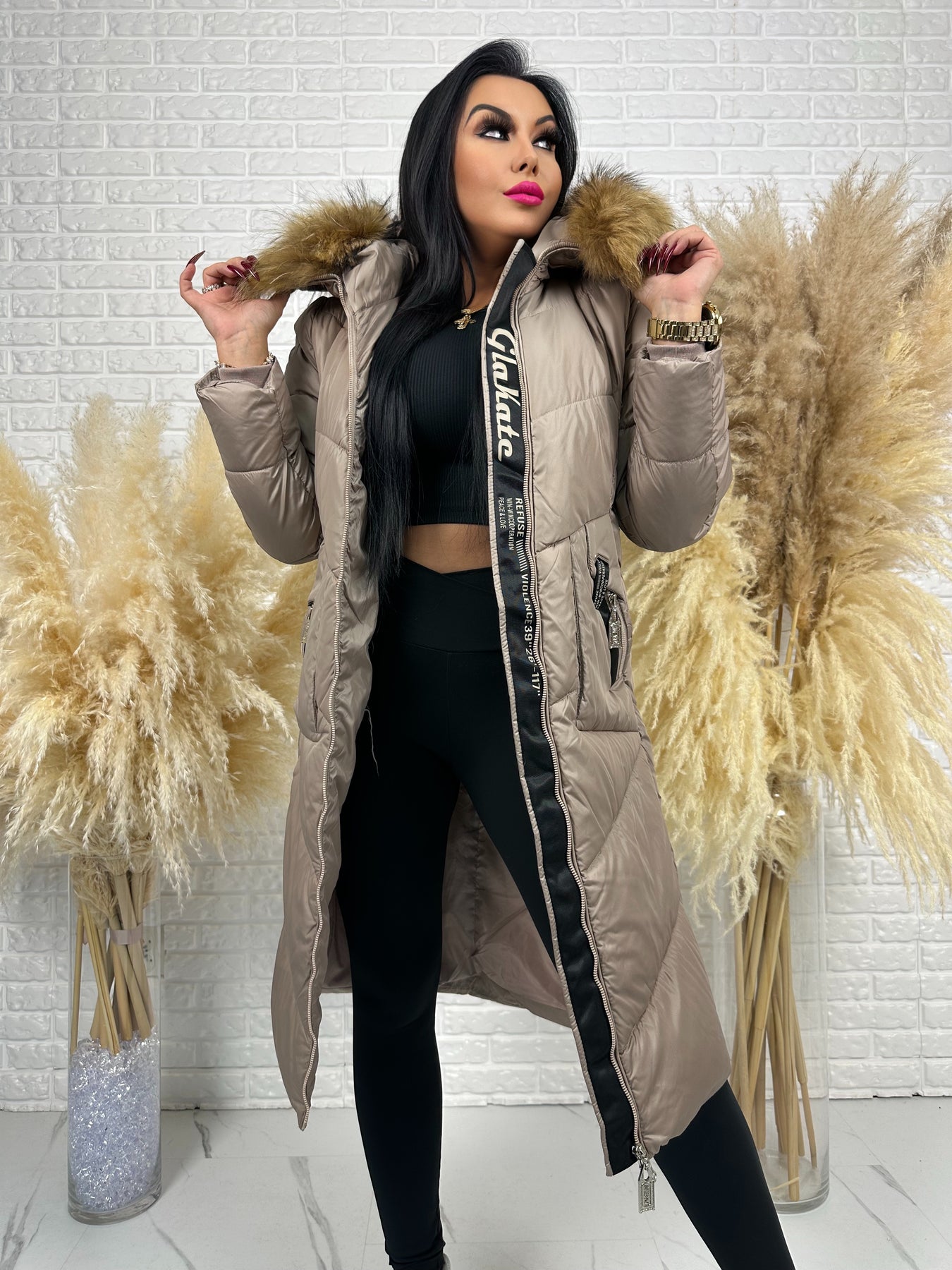 Kurtka MESA - długa zimowa kurtka, kaptur z futerkiem