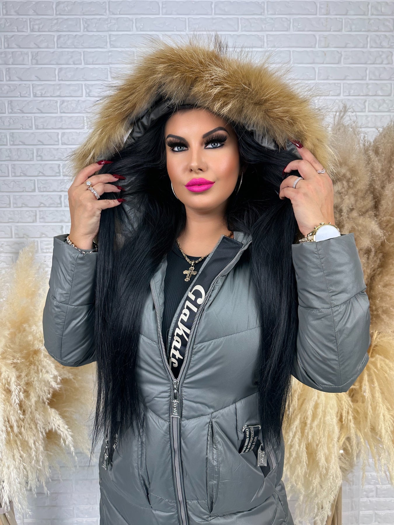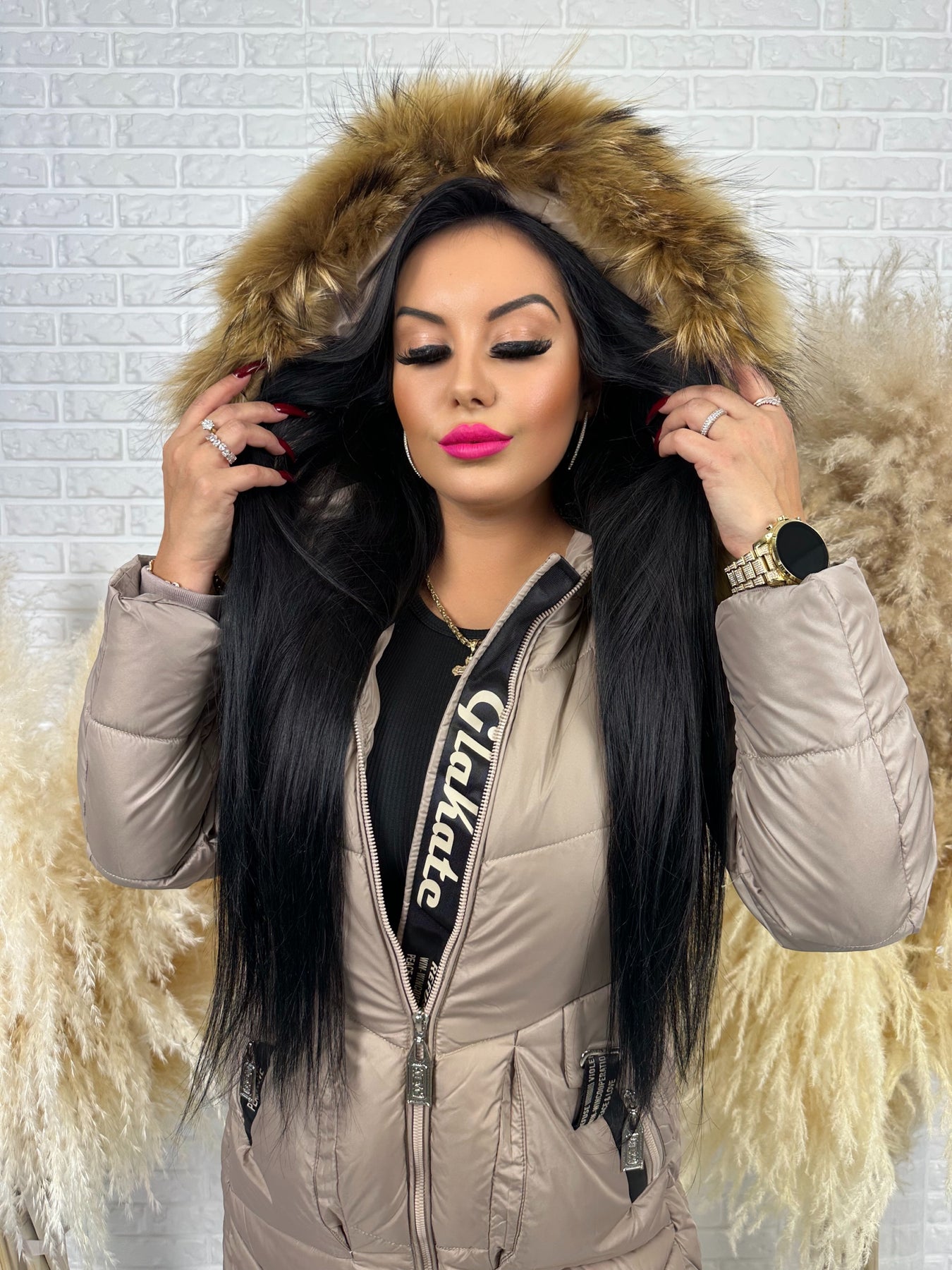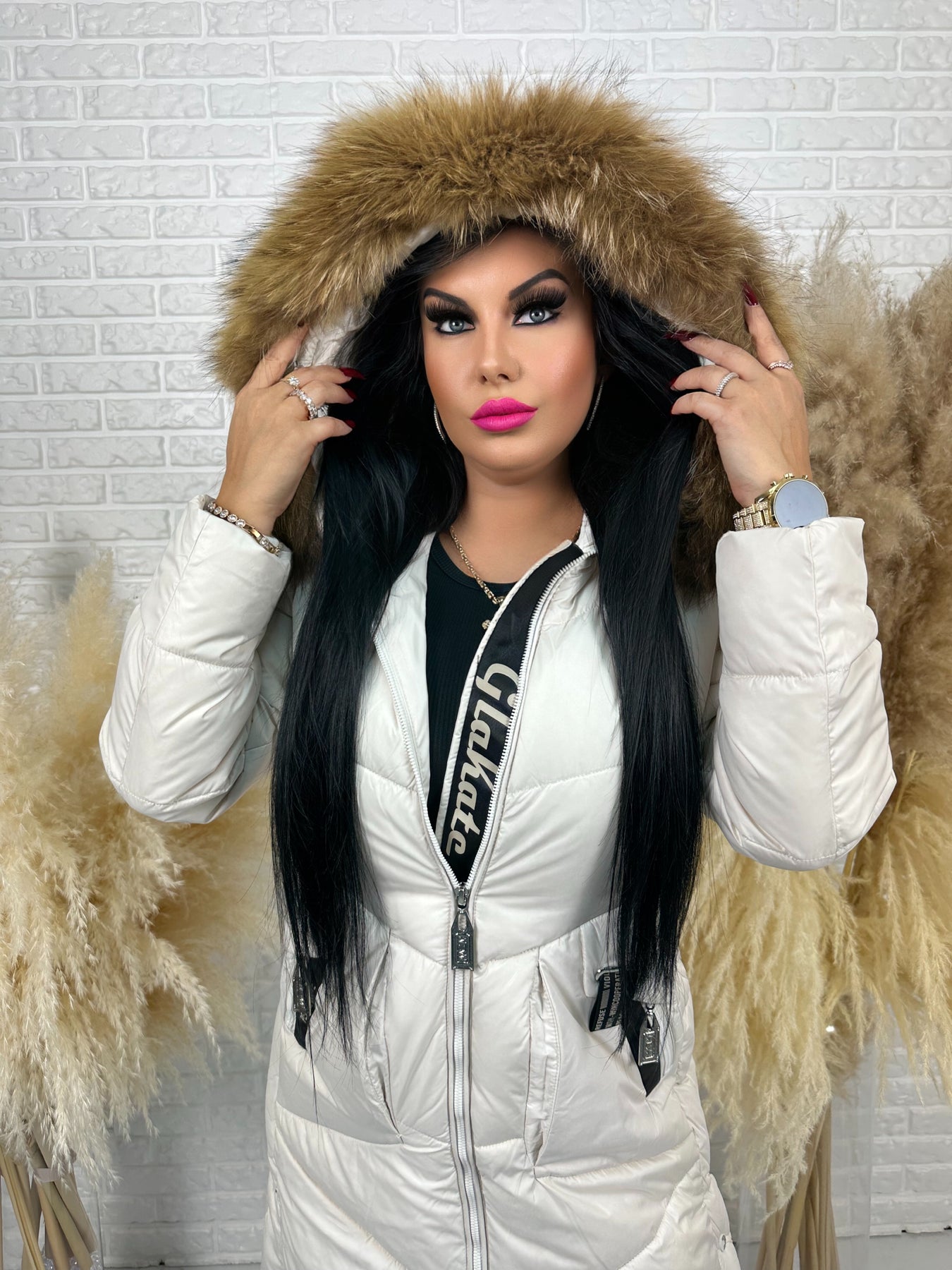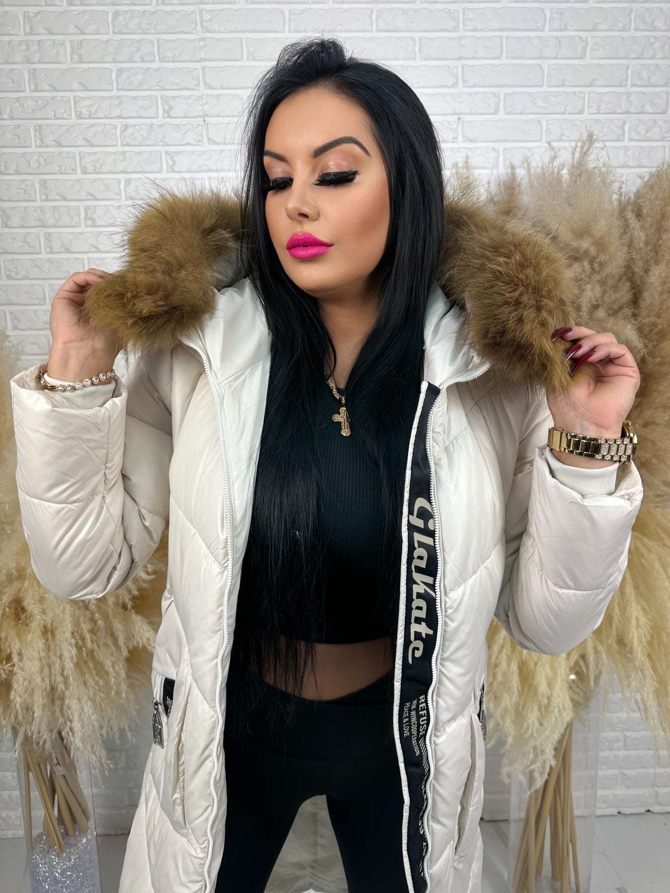 • Kaptur: nieodpinany, ozdobny z futerkiem