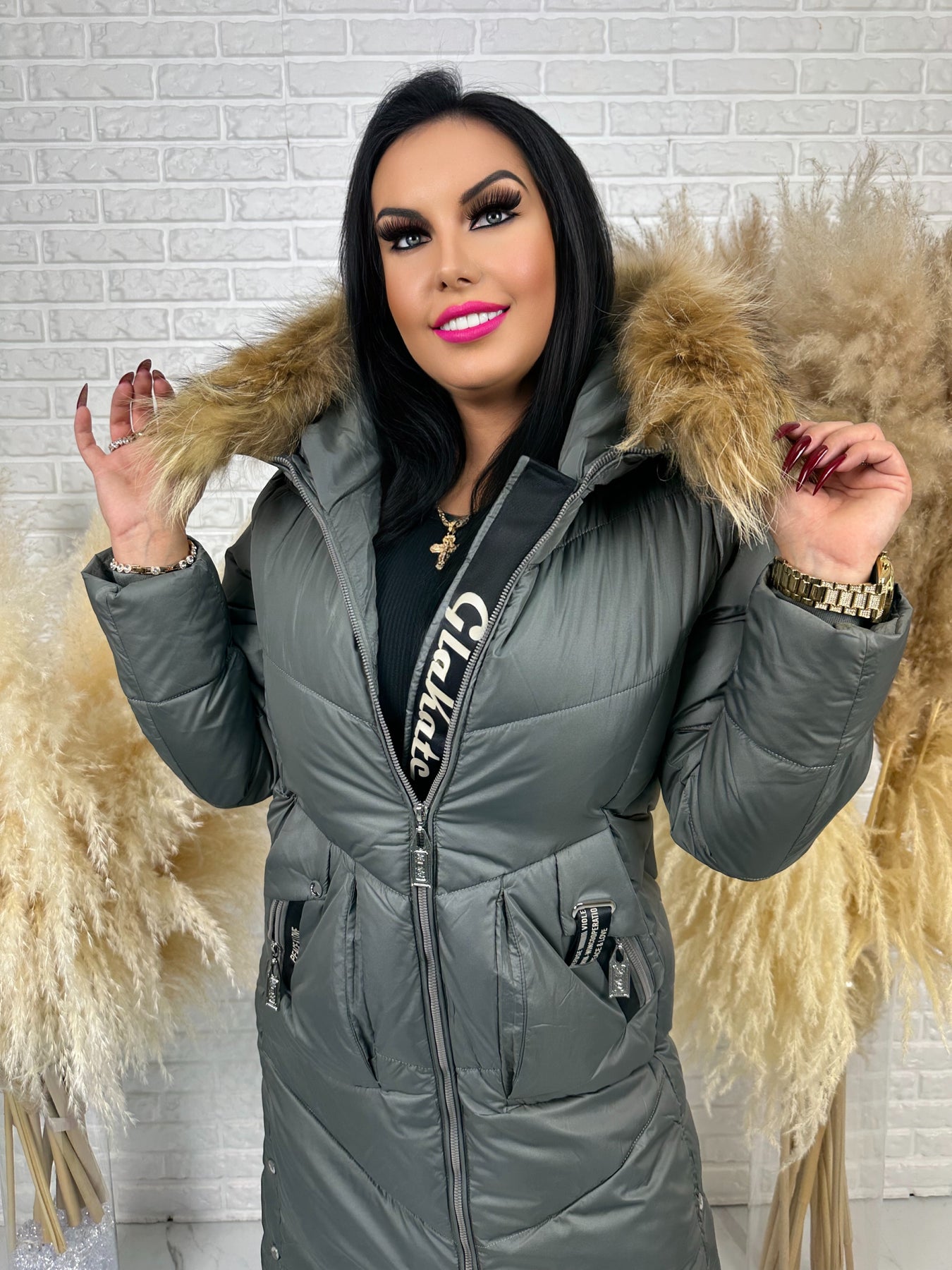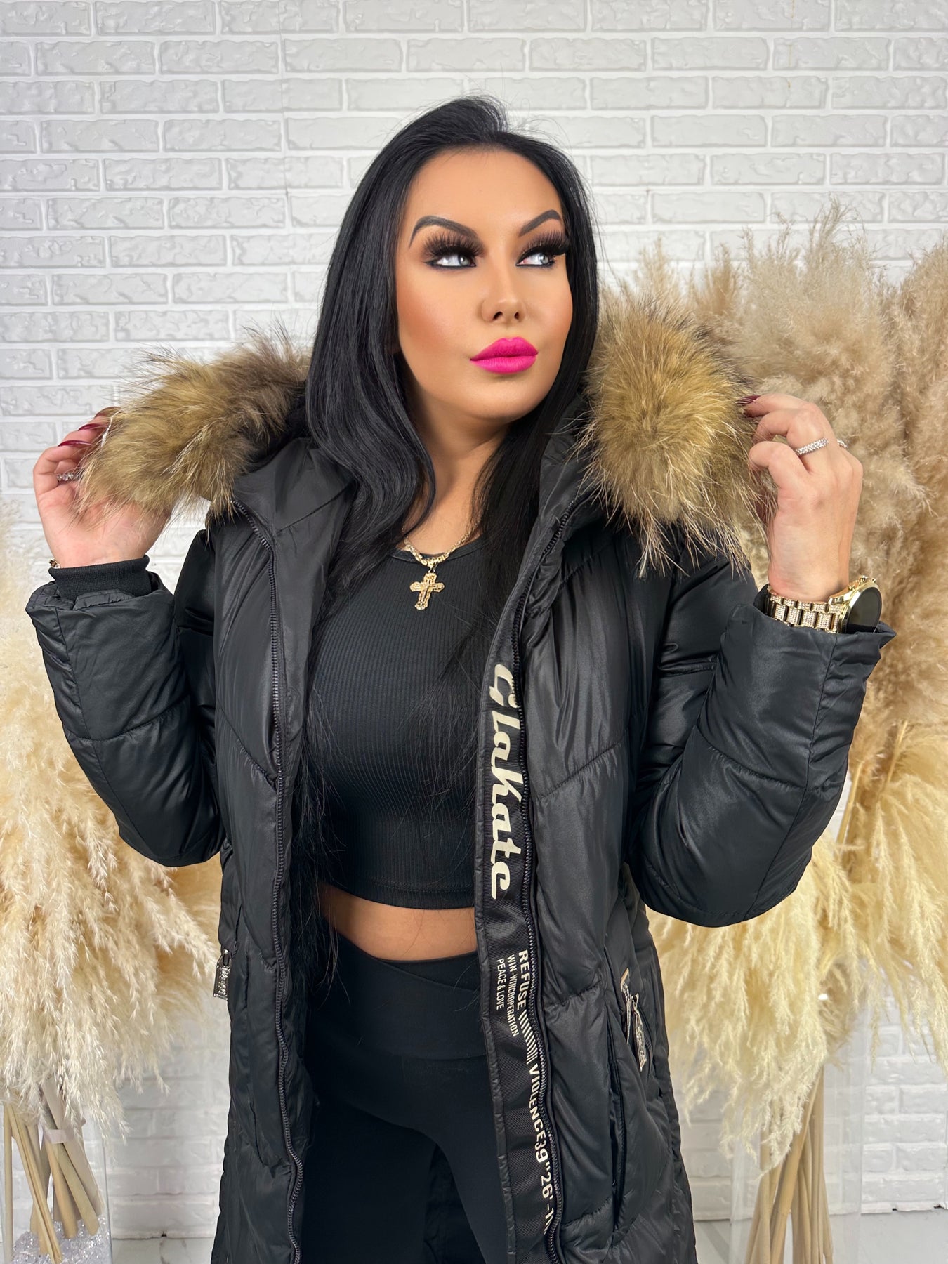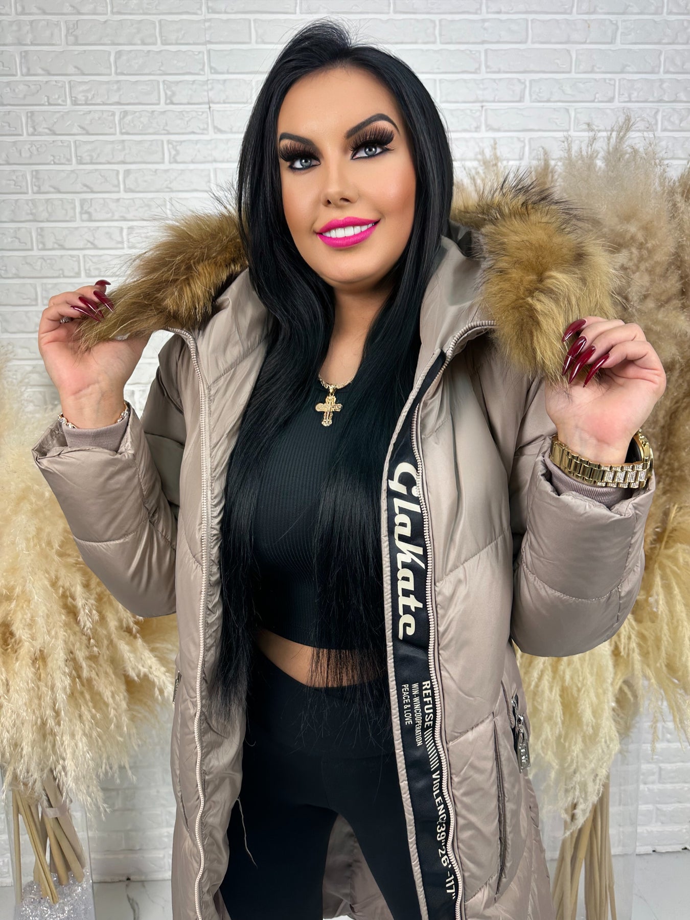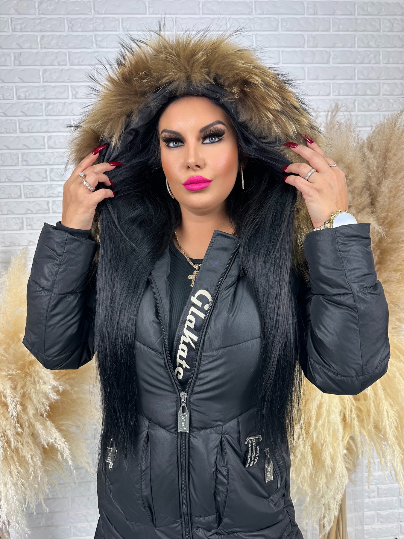 • Kaptur: nieodpinany, ozdobny z futerkiem