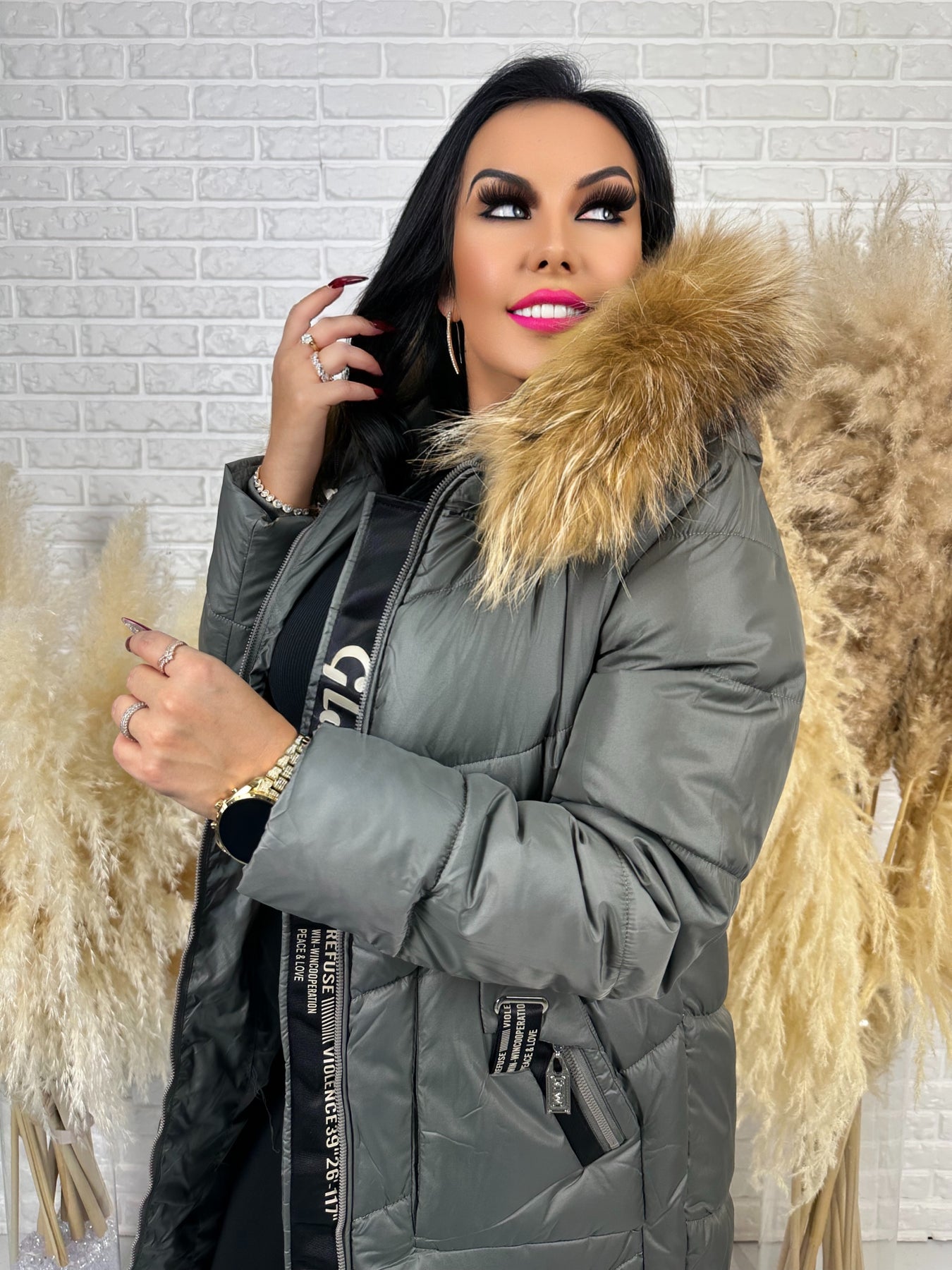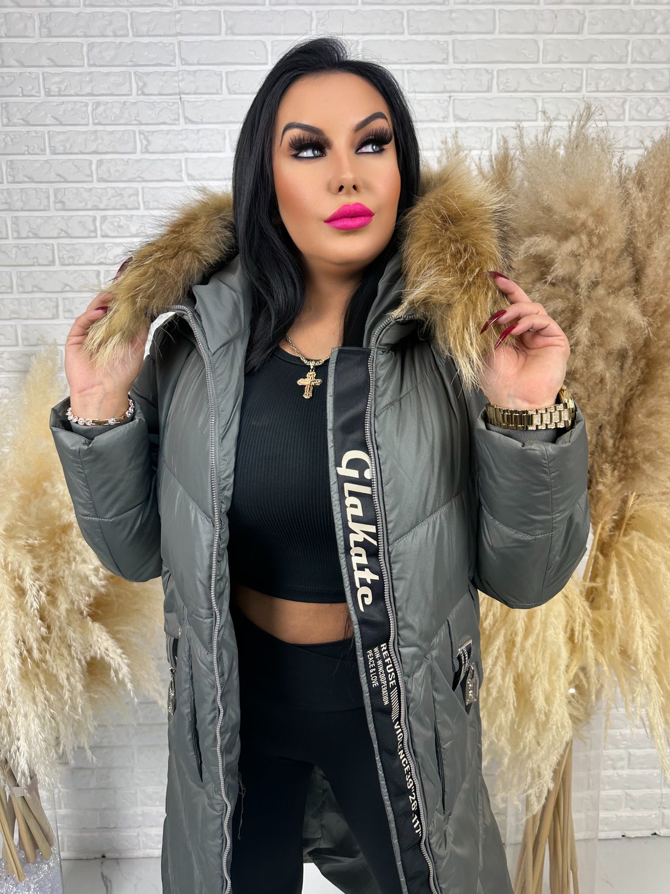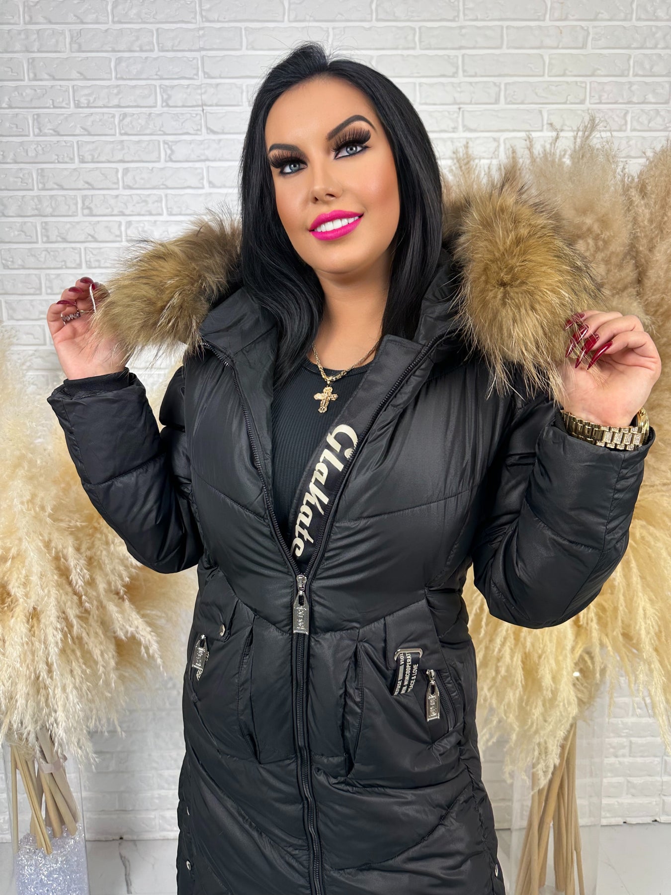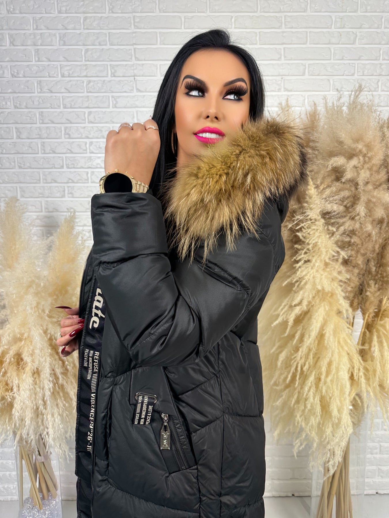 • Kaptur: nieodpinany, ozdobny z futerkiem