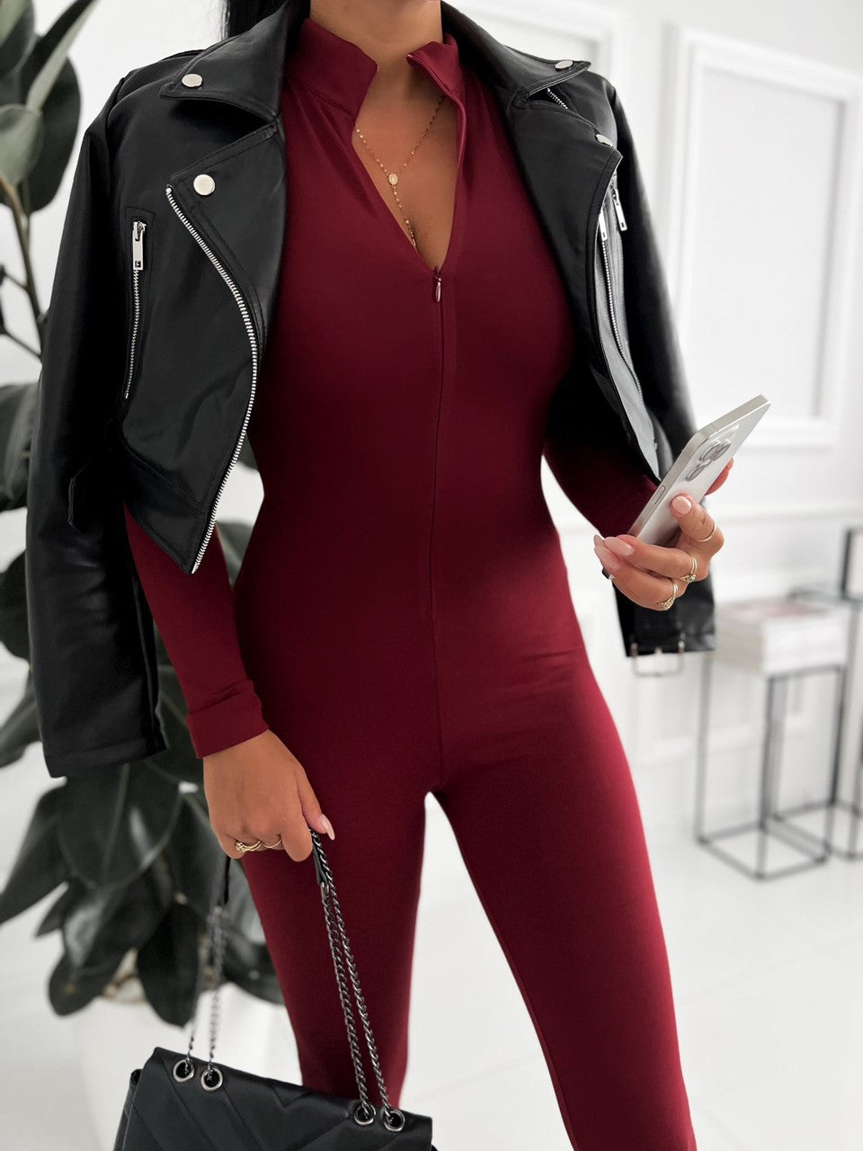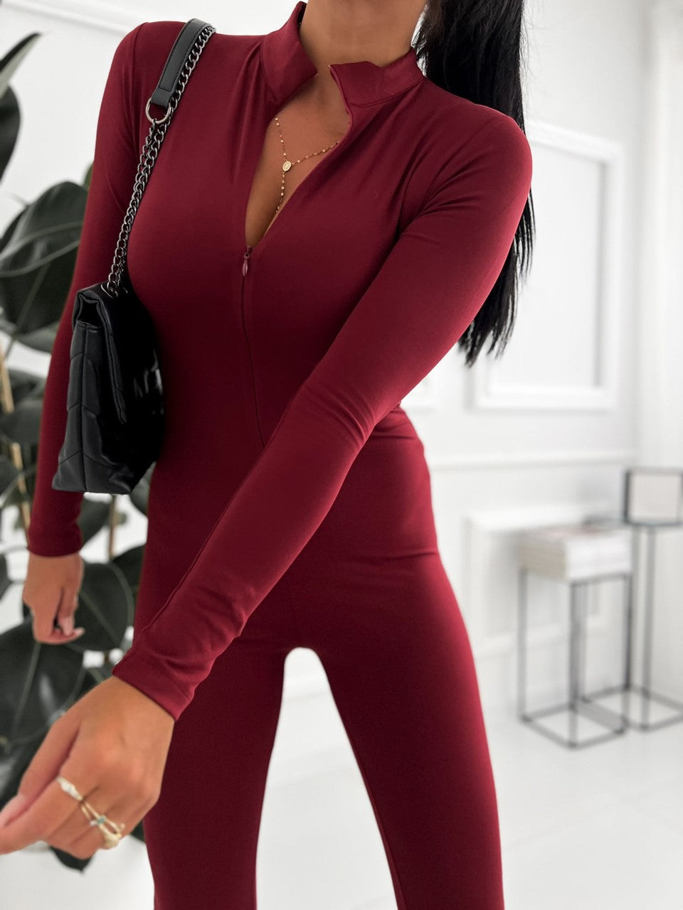 Fason: długi kombinezon, dopasowany