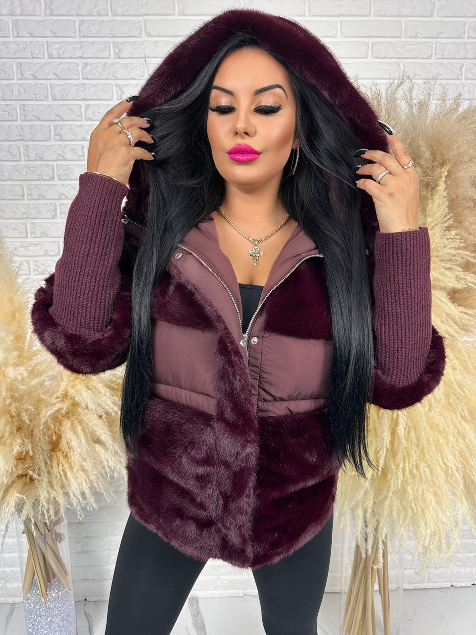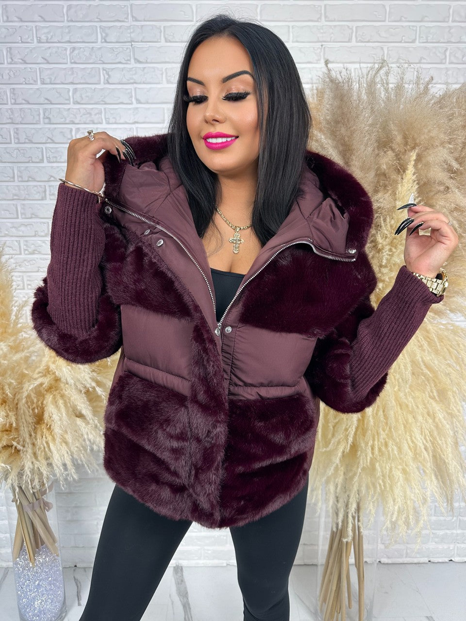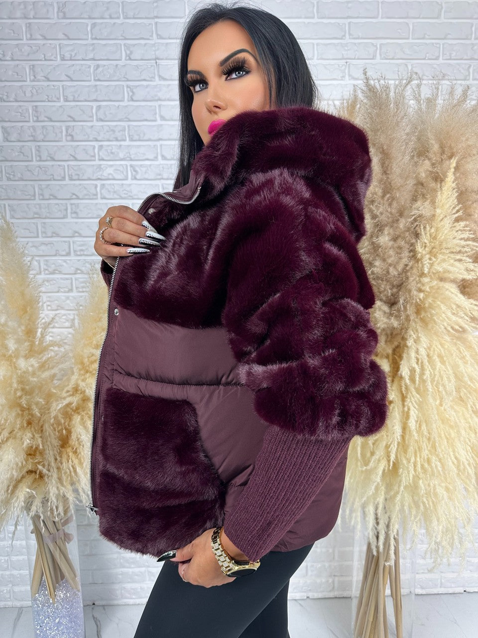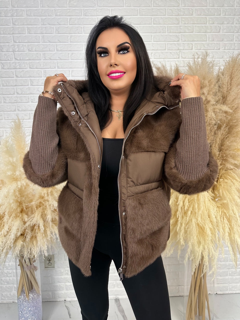 Kurtka SAWONA oversize z futerkiem i kapturem – stylowa kurtka damska brązowa