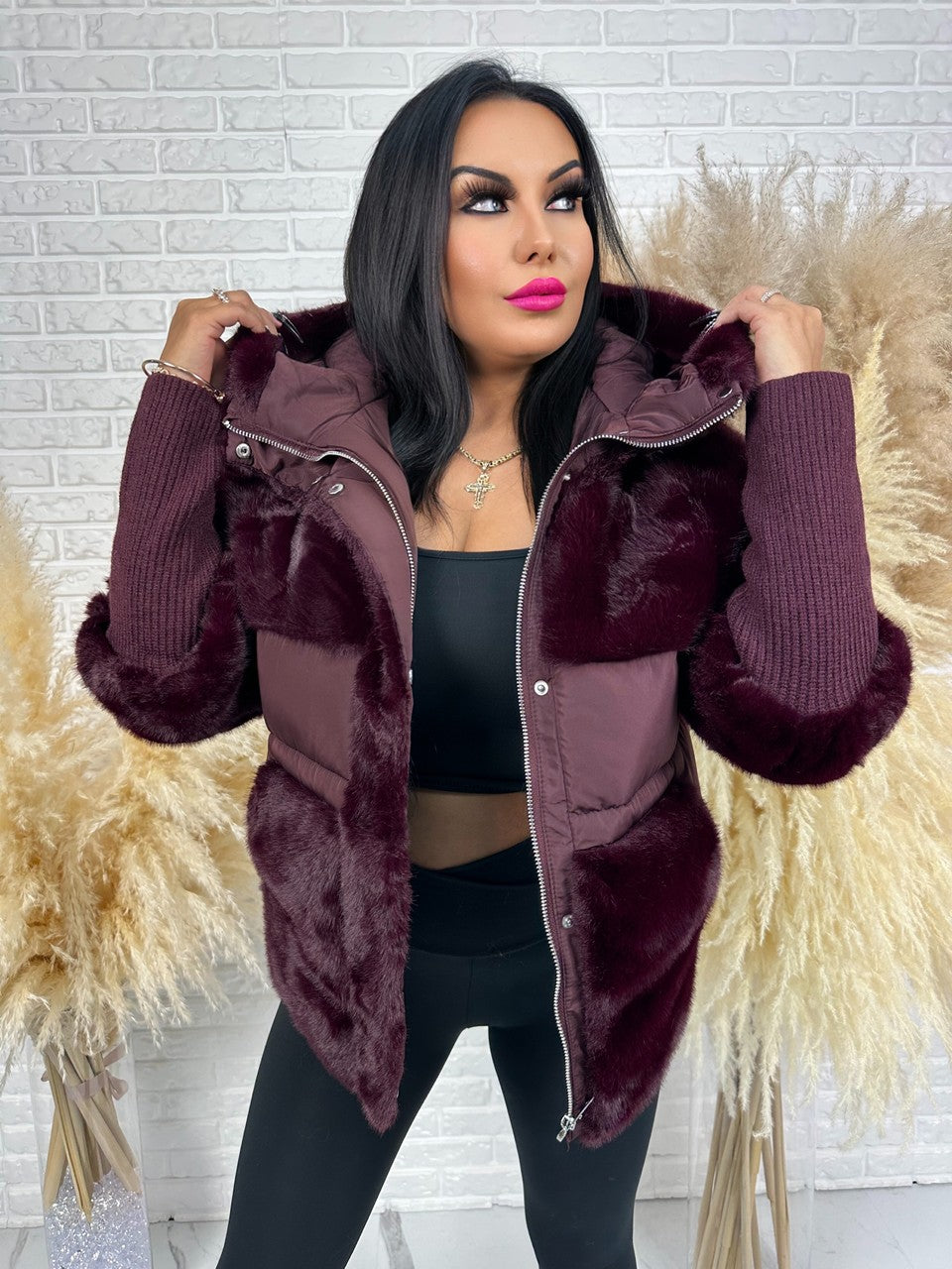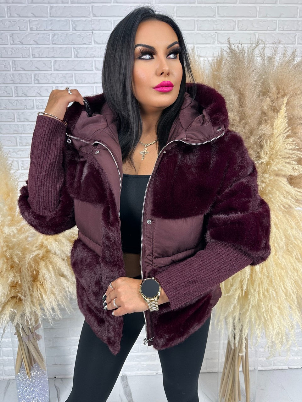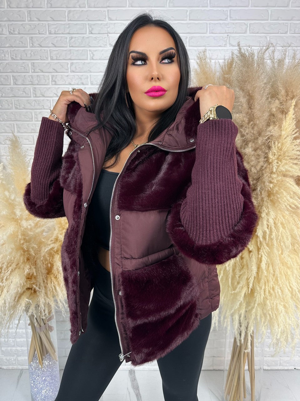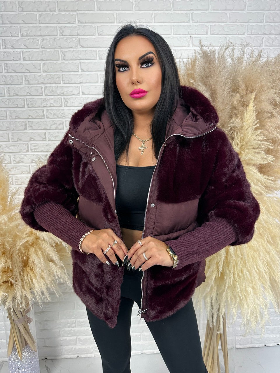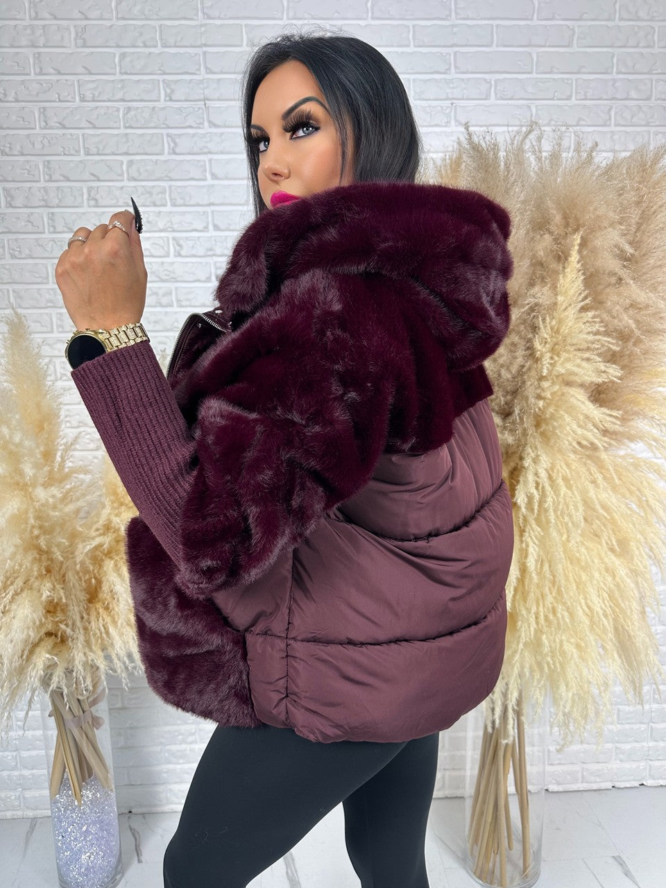 Kurtka SAWONA oversize z futerkiem i kapturem – stylowa kurtka damska brązowa