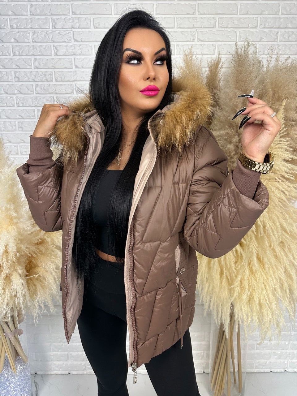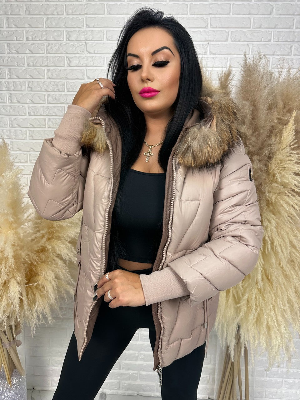 Postaw na styl i komfort nawet w największe mrozy! Kurtka BRONX to model, który łączy kobiecą elegancję z miejskim luzem. Pikowana forma pięknie układa się na sylwetce, a naturalne futerko przy kapturze dodaje jej luksusowego charakteru. Futerko jest odpinane, więc sama decydujesz, czy chcesz wyglądać bardziej szykownie, czy sportowo.