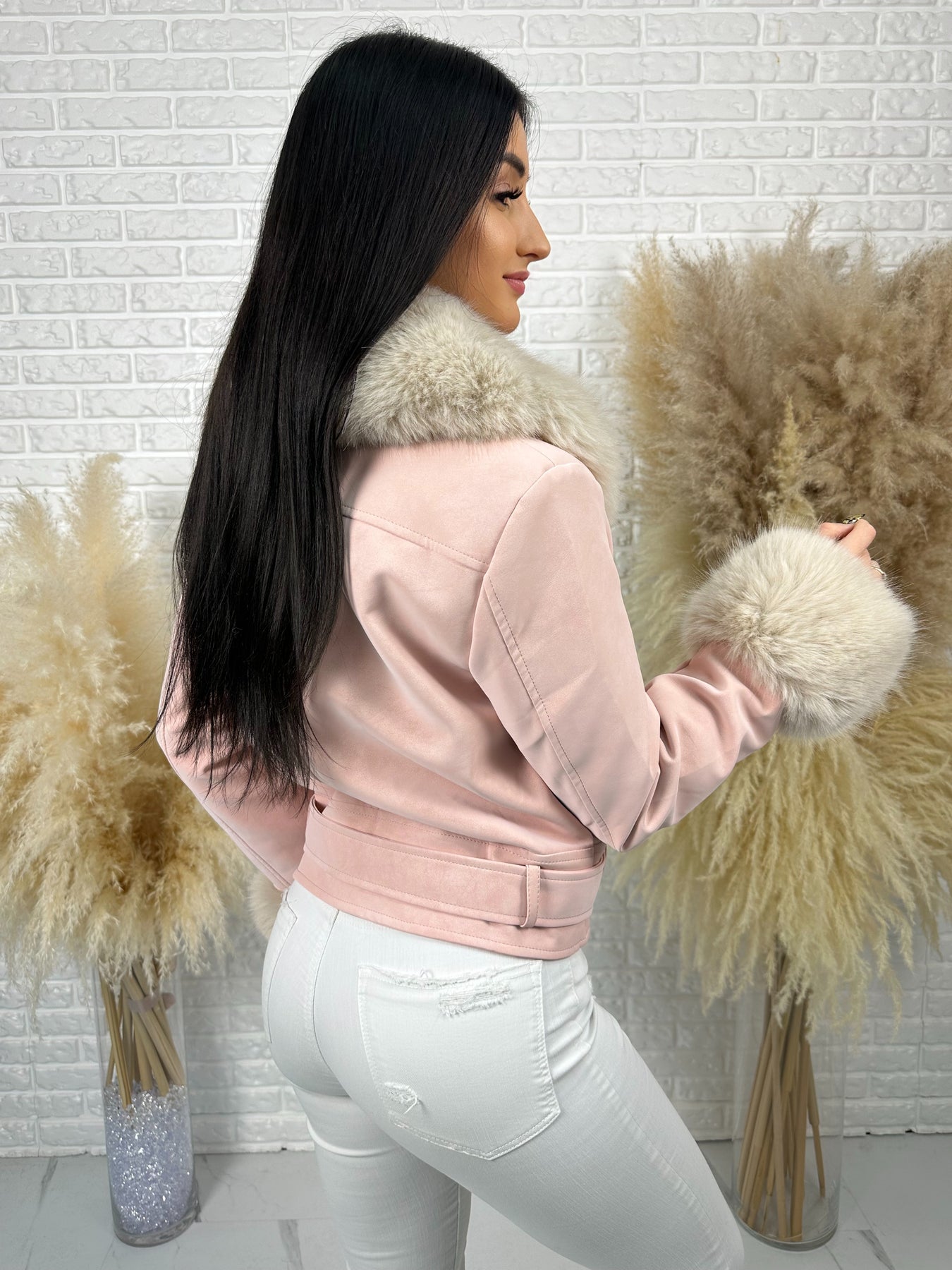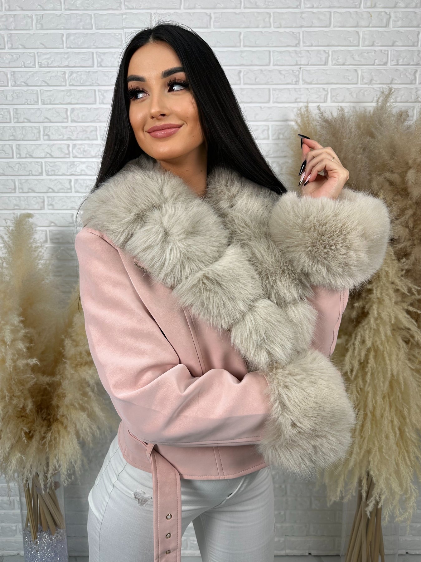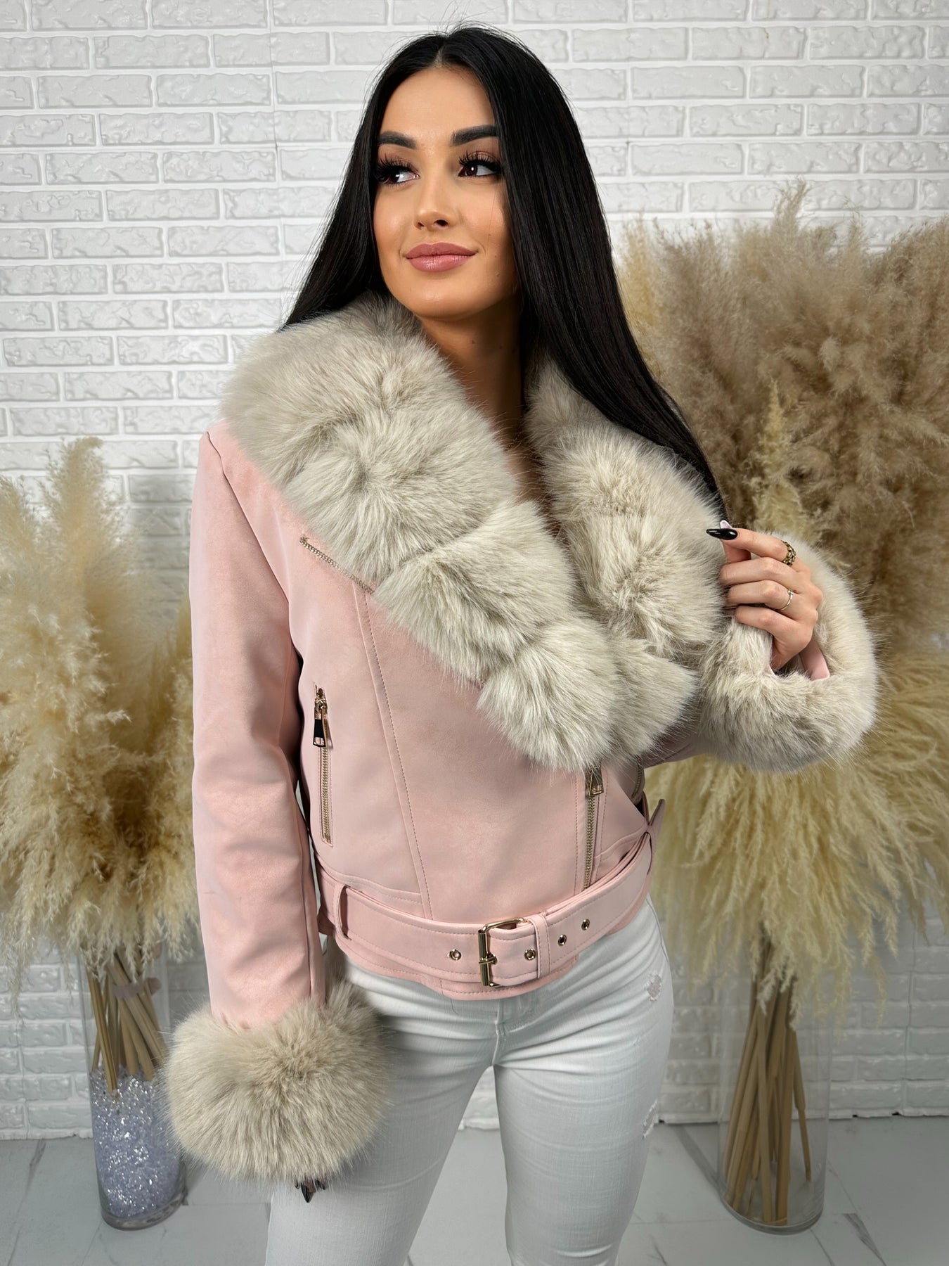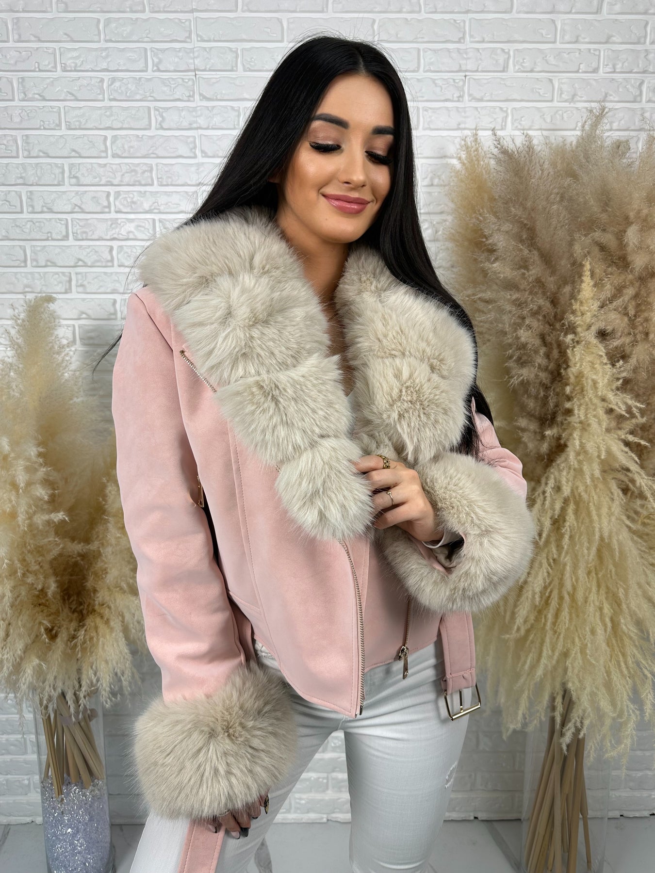 🤍 Efektowne, odpinane futerko przy kołnierzu i rękawach – luksusowy akcent, który robi całą stylizację