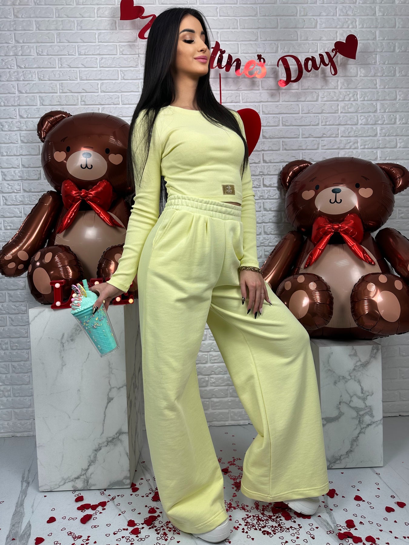 Komplet VERA to idealne połączenie wygody z modowym charakterem. Krótka, prążkowana bluzka z delikatnymi poduszkami na ramionach pięknie buduje sylwetkę, a szerokie spodnie nadają całości lekkości i nowoczesnego looku 🤍